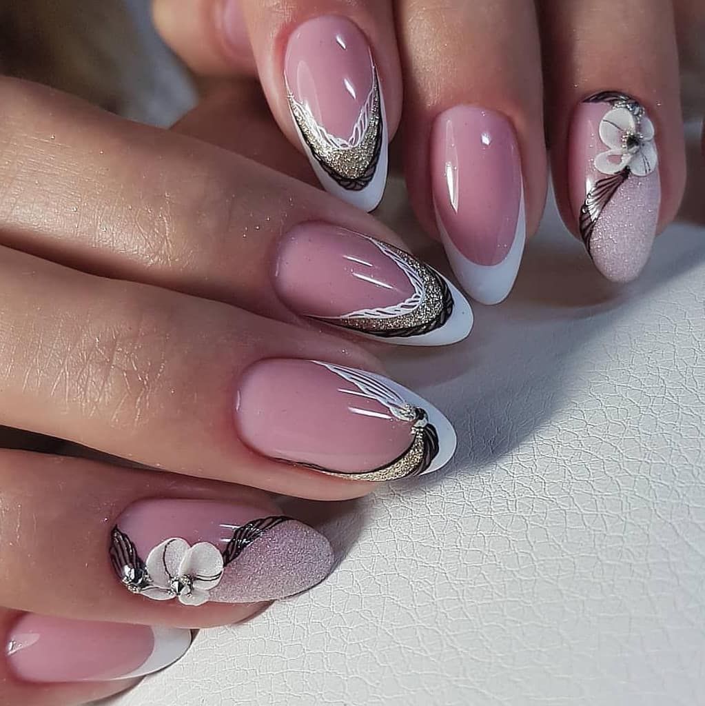 Модницам быстро надоедает классика. Хочется чего-то яркого, но при этом такого же благородного, как и бело-розовый френч. Отличный вариант, который будет уместен на торжественном событии, — микс черного или бордового оттенков с золотом или серебром. Это роскошное сочетание. Девушка с красивыми длинными пальцами и таким маникюром станет невероятно притягательным объектом для сильного пола.