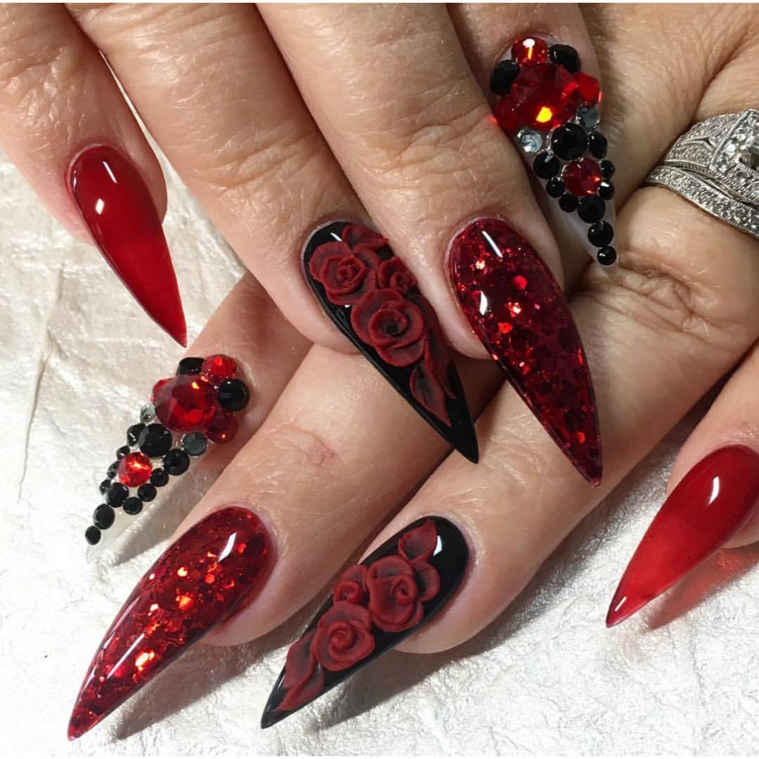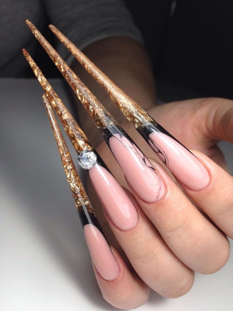 Обладательницам острых ногтей мы не станем советовать быть скромнее. Ведь скромницы не носят столь смелую форму. Как бы социум не относился к такой форме, никто не будет отрицать что черный цвет и острые ноготки просто созданы друг для друга. Черные ногти — это прекрасное поле для экспериментов. Пламенные рисунки, художественная роспись, камни, все это, на острой форме в черном цвете, просто завораживает.
