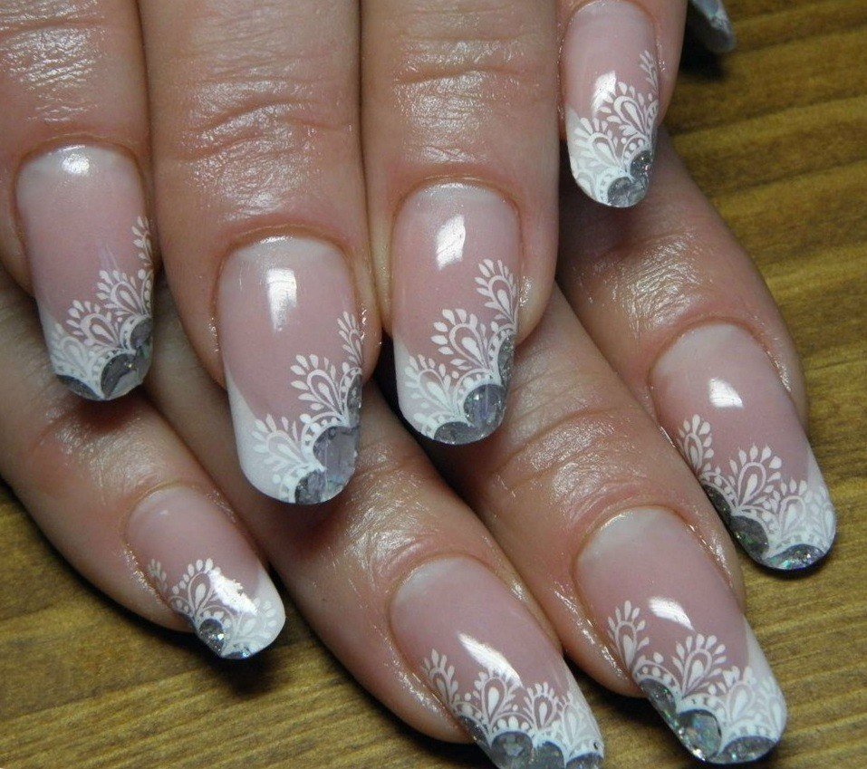 Нужно всего лишь выбрать понравившийся узор и через несколько минут девушка просто не узнает свои ручки. Очень часто стемпинг применяют при выполнении самой улыбочки. Невероятно женственно и романтично выглядят узоры на свободной от френча части ногтевой пластины.