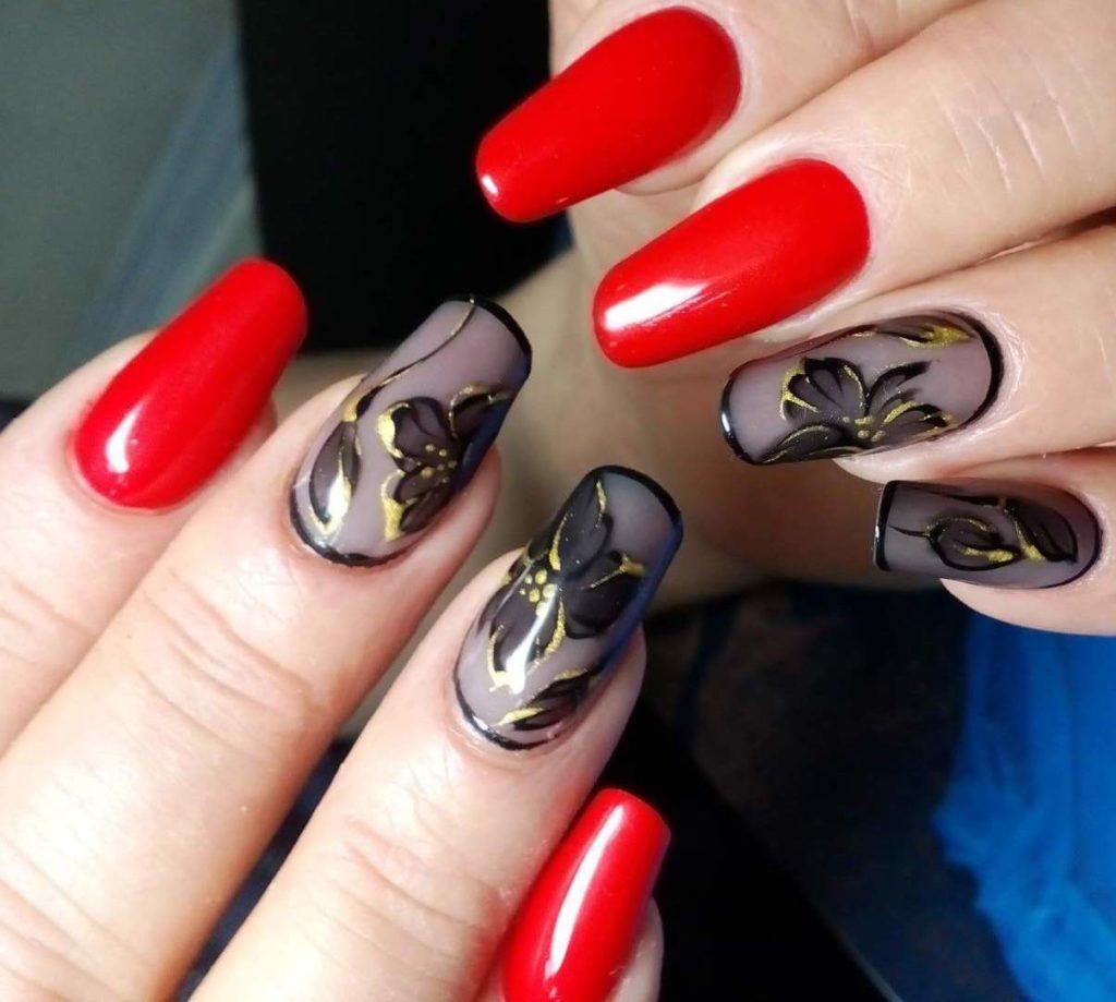 Благодаря черному цвету роспись на ногтях становится глубже и объемнее. На черном фоне можно добиться лёгкого эффекта вуали, а цвет самого рисунка выделить и сделать насыщеннее. В последнее время взрывают Инстаграм разнообразные цветы и морские жители, выполненные на черном фоне.
