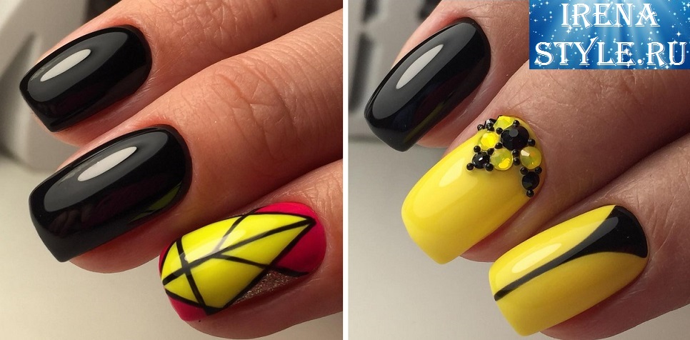 Учитывая моду на минимализм, самым актуальным будет однотон на коротких квадратных ногтях и миндале. Тем не менее дизайны в сочетании с черным цветом просто сногсшибательны, и мы вынуждены сделать исключение, и поддаться этим манящим рисункам и блестяшкам.