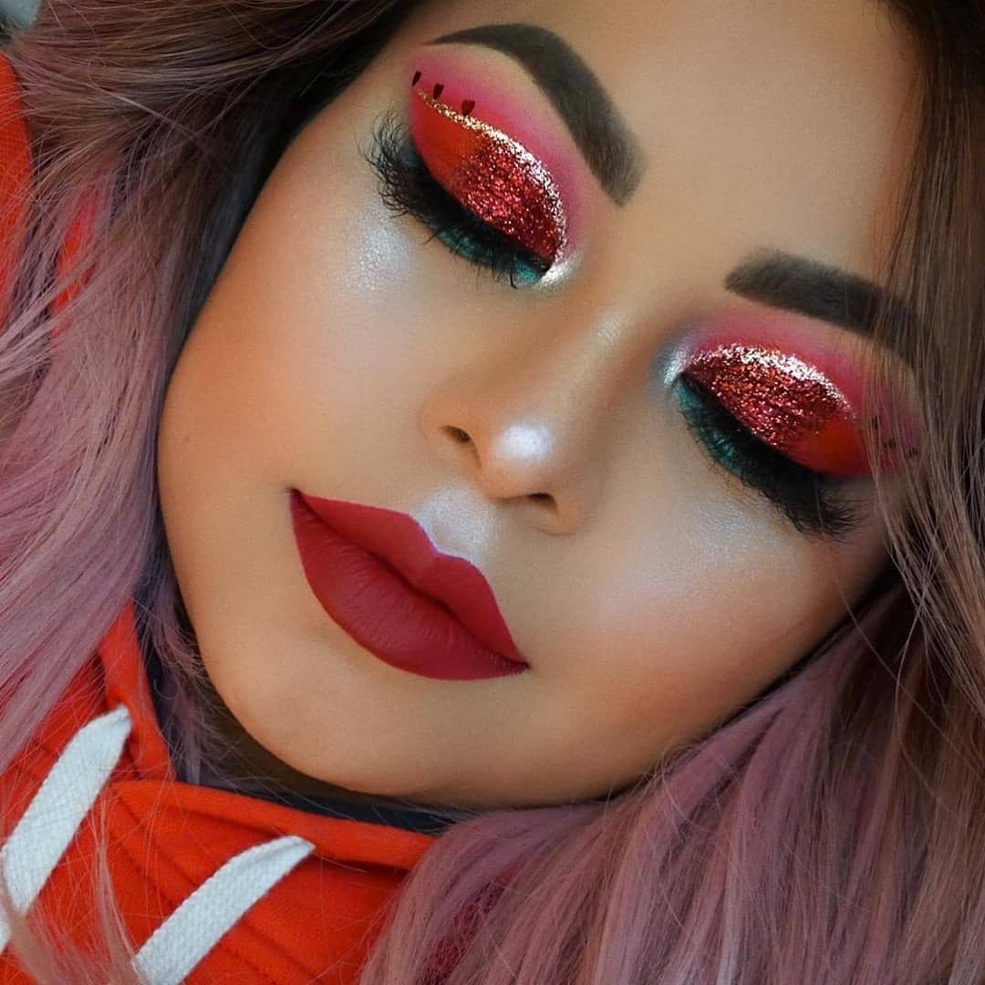 - Тщательно делай растушевку. Красные тени не подходят для графичного макияжа с четкими границами;