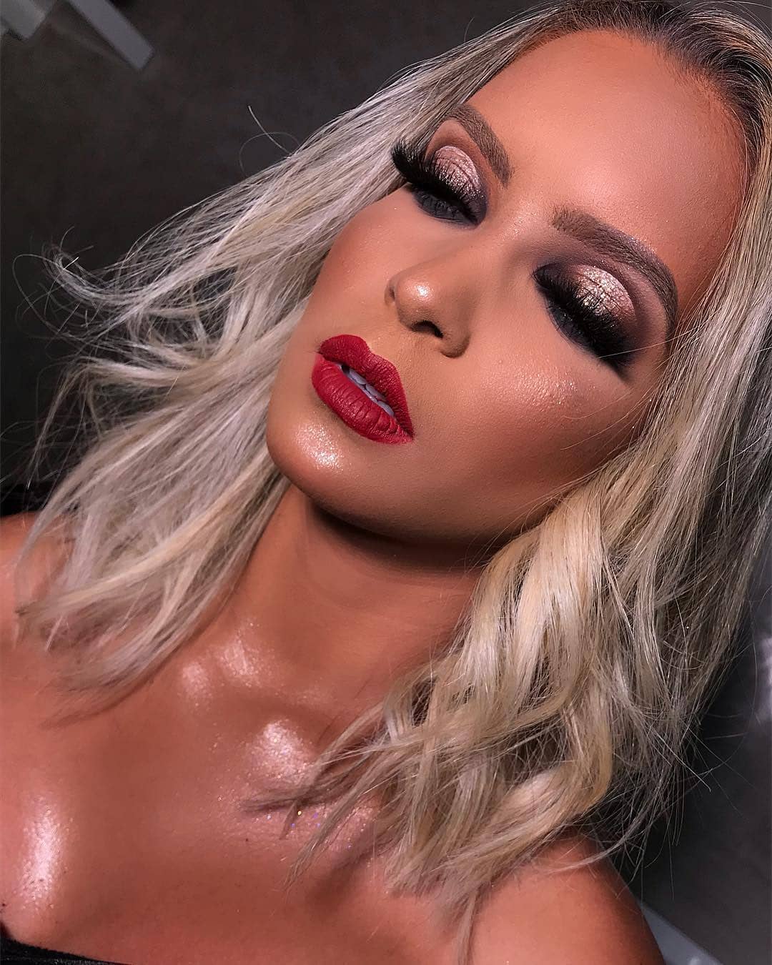 - Уравновешивай красный смоки айс другими акцентами: не забывай про румяна и макияж губ;