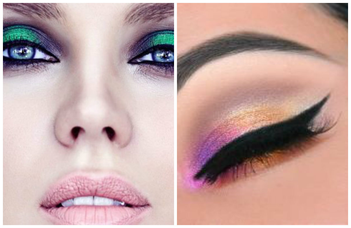 По желанию можно добавить стрелки, но не сильно четкие и резкие. Затем наносятся стойкие и яркие цвета с эффектом мерцания. В последнюю очередь прокрашиваются ресницы и закрепляется макияж при помощи специального спрея фиксатора.