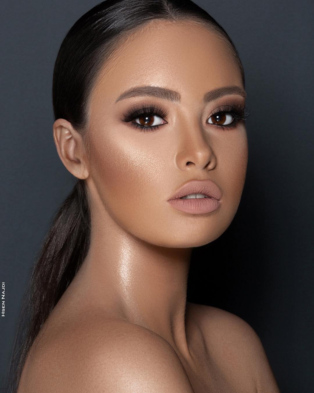 К вашим услугам вся палитра нюда: бежевый, шампань, коричневый, карамельный, персиковый, розовый… Для создания нежного образа важно правильно расставить сияющие акценты, поэтому хайлайтер в данном случае – стопроцентный must have