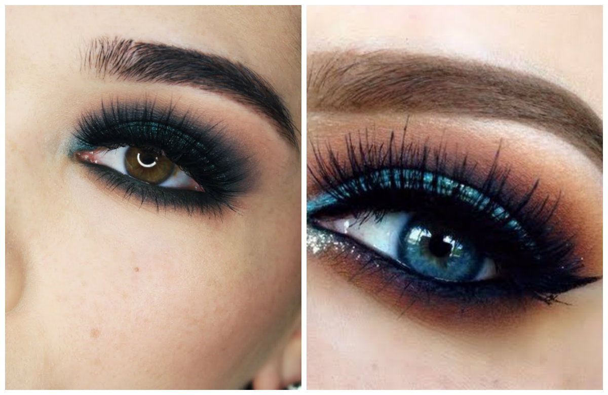 Как может показаться, столь темный и насыщенный макияж никак не подойдет для голубых глаз. Однако правильно подобранные тона теней и грамотно оформленный мейк-ап способны создать из юной милой девушки прекрасную искусительницу с пронзительным и сексуальным взглядом. Палитру оттенков выбирайте из фиолетовых, зеленых, коричневых цветов. Их можно комбинировать. Например, коричневый и серый в сочетании с голубыми глазами будет смотреться великолепно. То же самое касается комбинации розового и черного цветов.