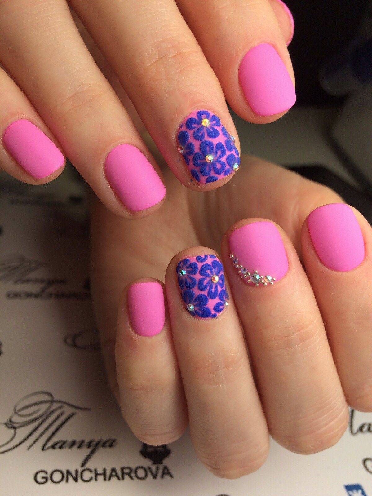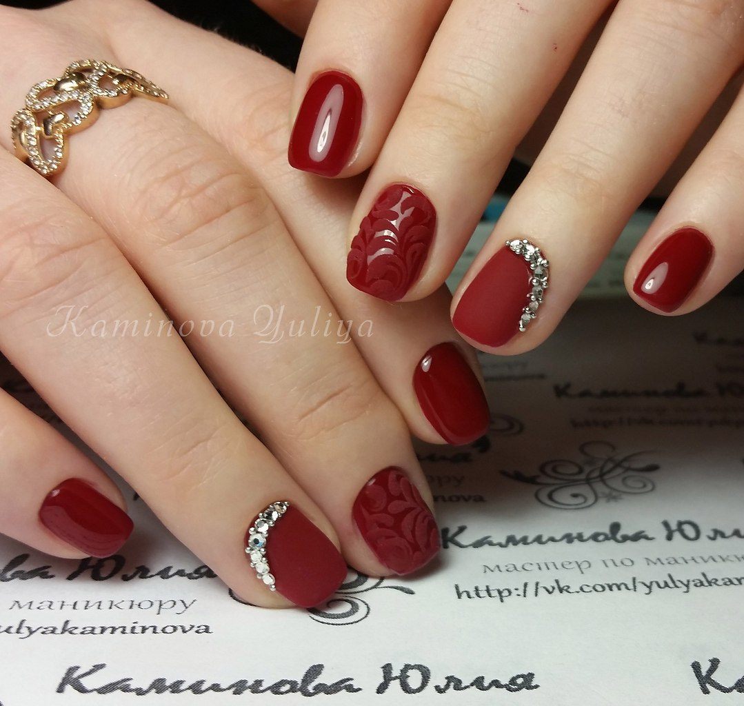 Бархатный маникюр хорош сам по себе, но можете и украсить стразами