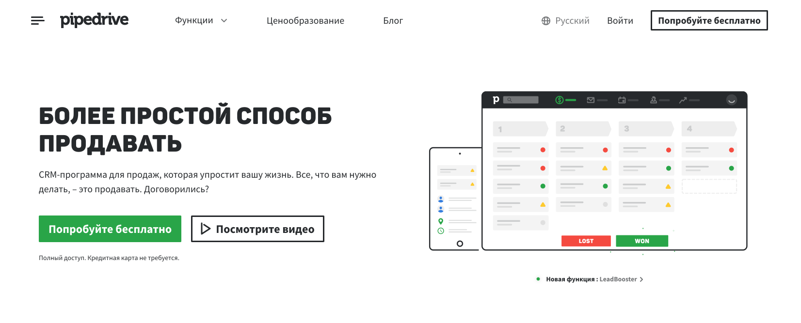 Хотя Pipedrive родом из Эстонии, интерфейс облачной программы поддерживает русский язык. Это касается только основной CRM-системы, а документация и поддержка пользователей помогают прокачать навыки английского. Также стоит заранее держать в голове зарубежные сервера, которые помимо надежности могут обернуться проблемами с Роскомнадзором и прочим суверенным интернетом.