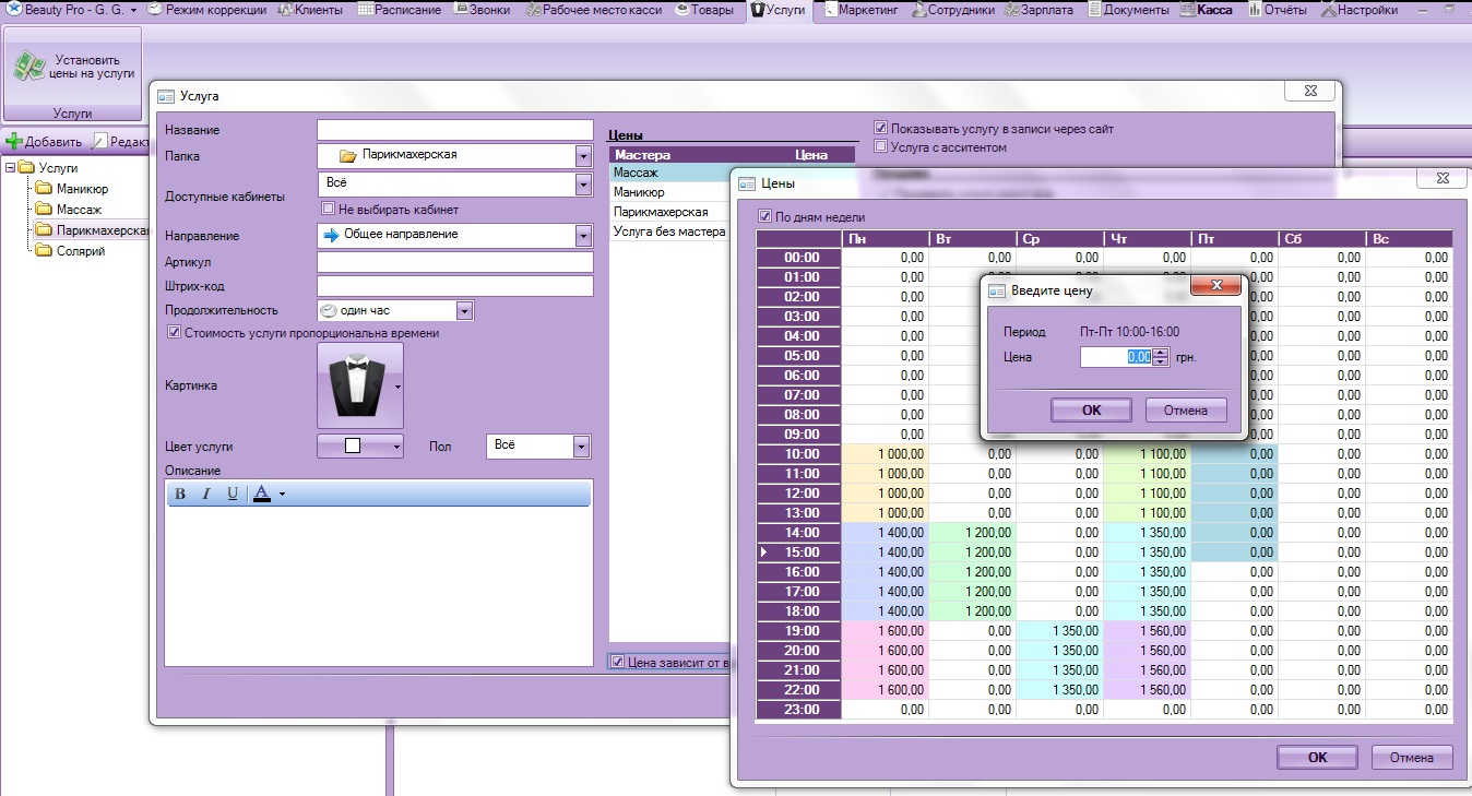 | Beauty Pro | Спецсофт для салонов красоты | * работа с товарами и клиентской базой; * простой журнал записи; * управление персоналом; * отчеты и статистика; * онлайн-запись | От 15 USD за месяц |