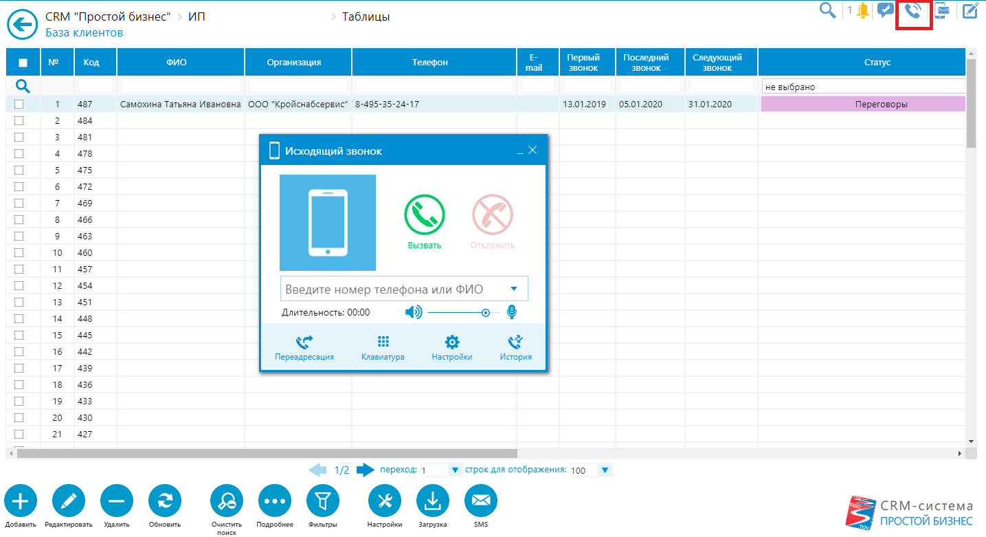 Из CRM можно звонить – в любом разделе меню нажми на значок телефонной трубки и введи номер. Для этого требуется подключение ip-телефонии.