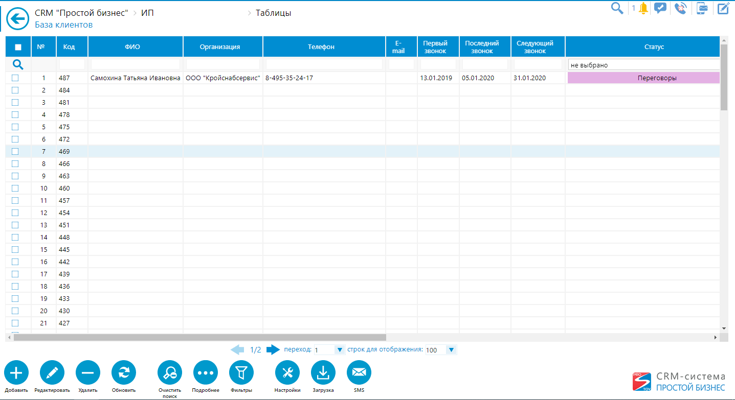 А так выглядит база данных – список всех клиентов с краткой информацией о них.
