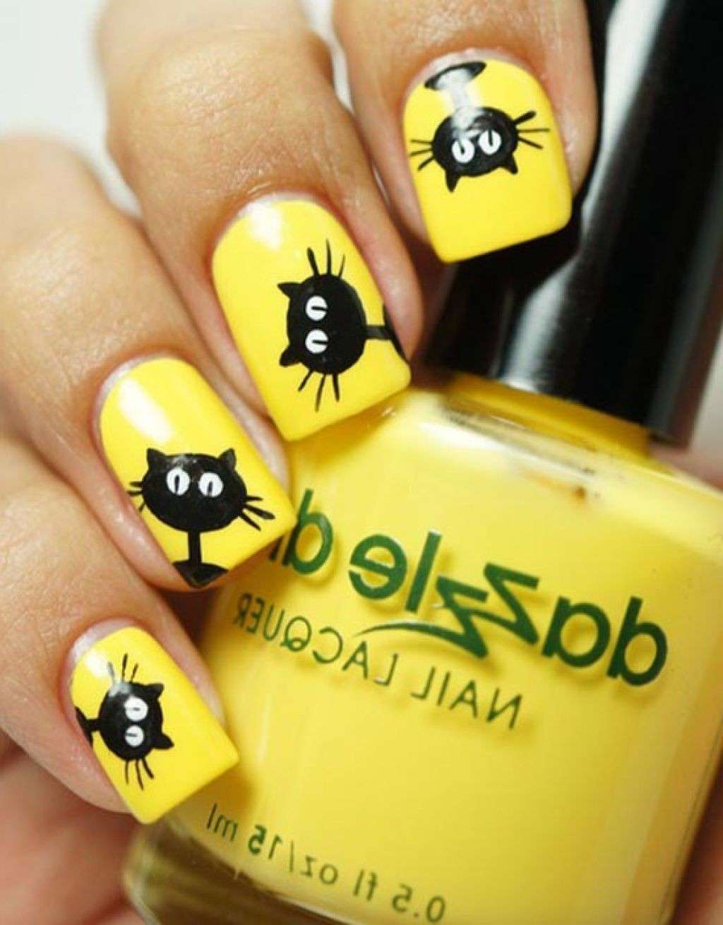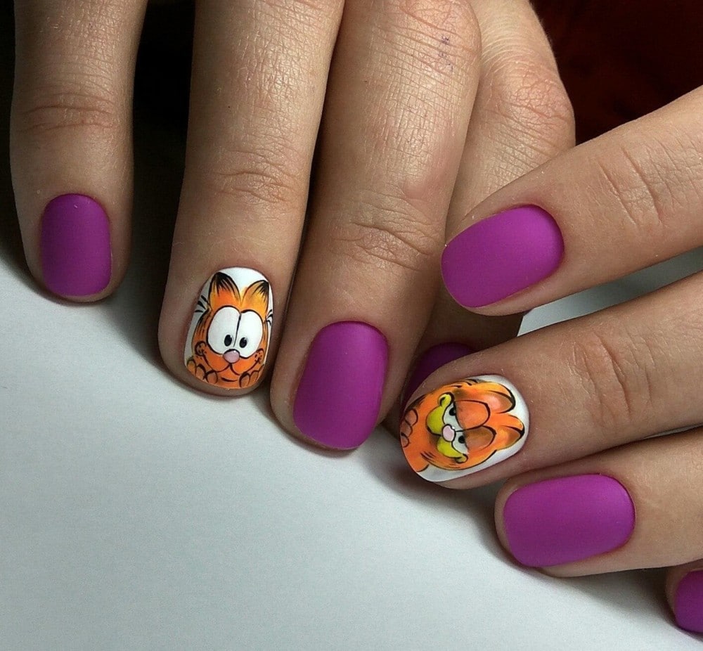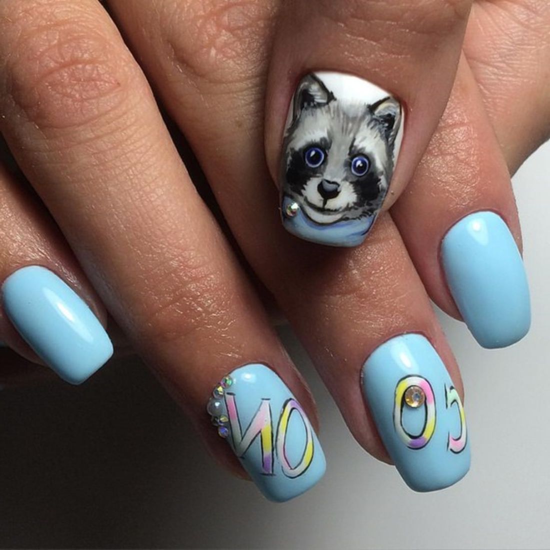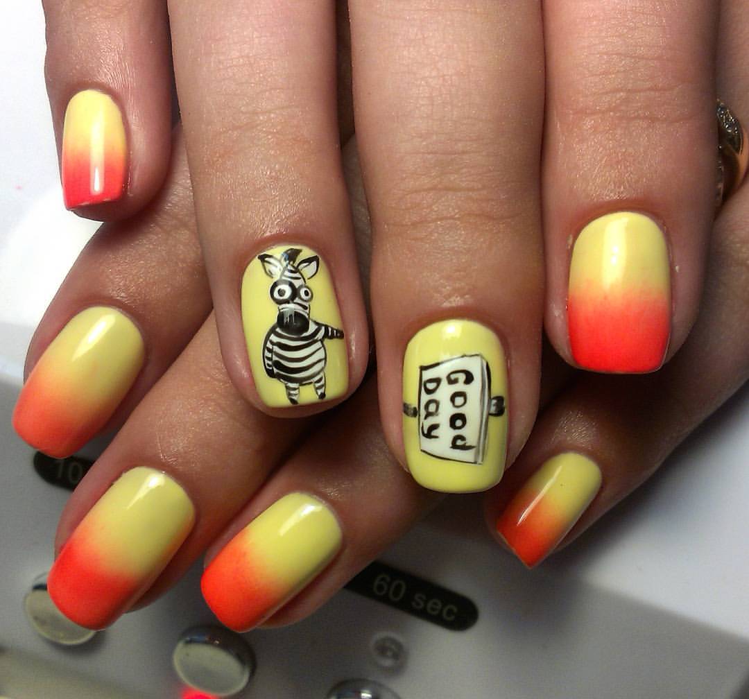 Лучшим помощником в создании веселого маникюра считается маникюрная кисть. С помощью тонкой кисти можно нарисовать мордочки животных, выполнить надписи, нарисовать сложный рисунок. Что касается оттенков, то несомненным лидером считается яркая цветовая палитра. Это не только желтый и оранжевый цвет. Используйте яркие пастельные тона, фиолетовый и даже черный цвет.