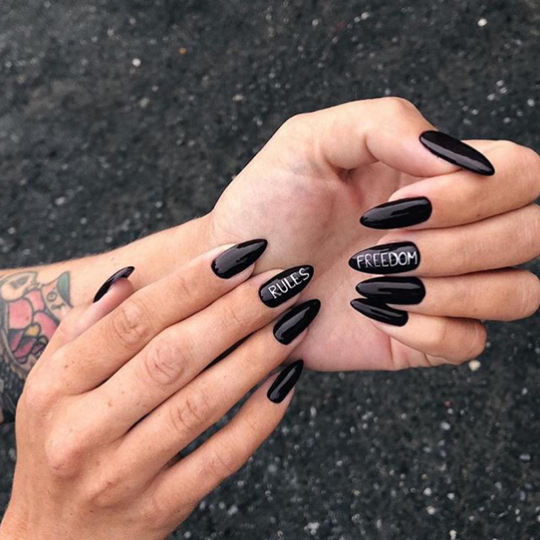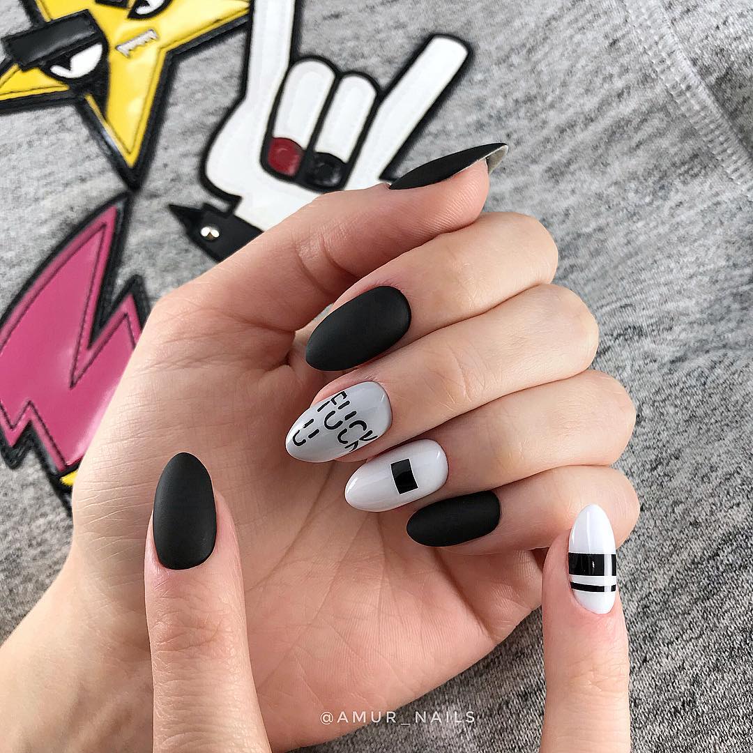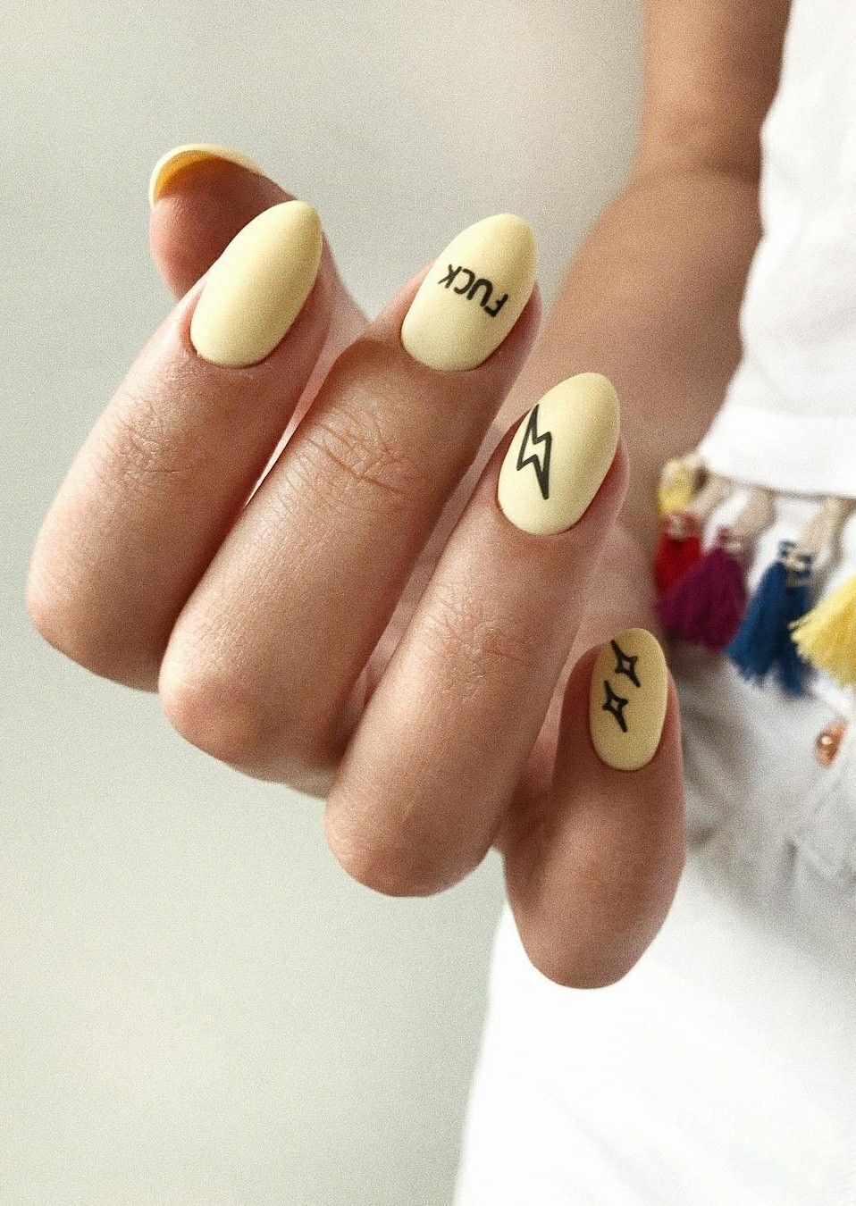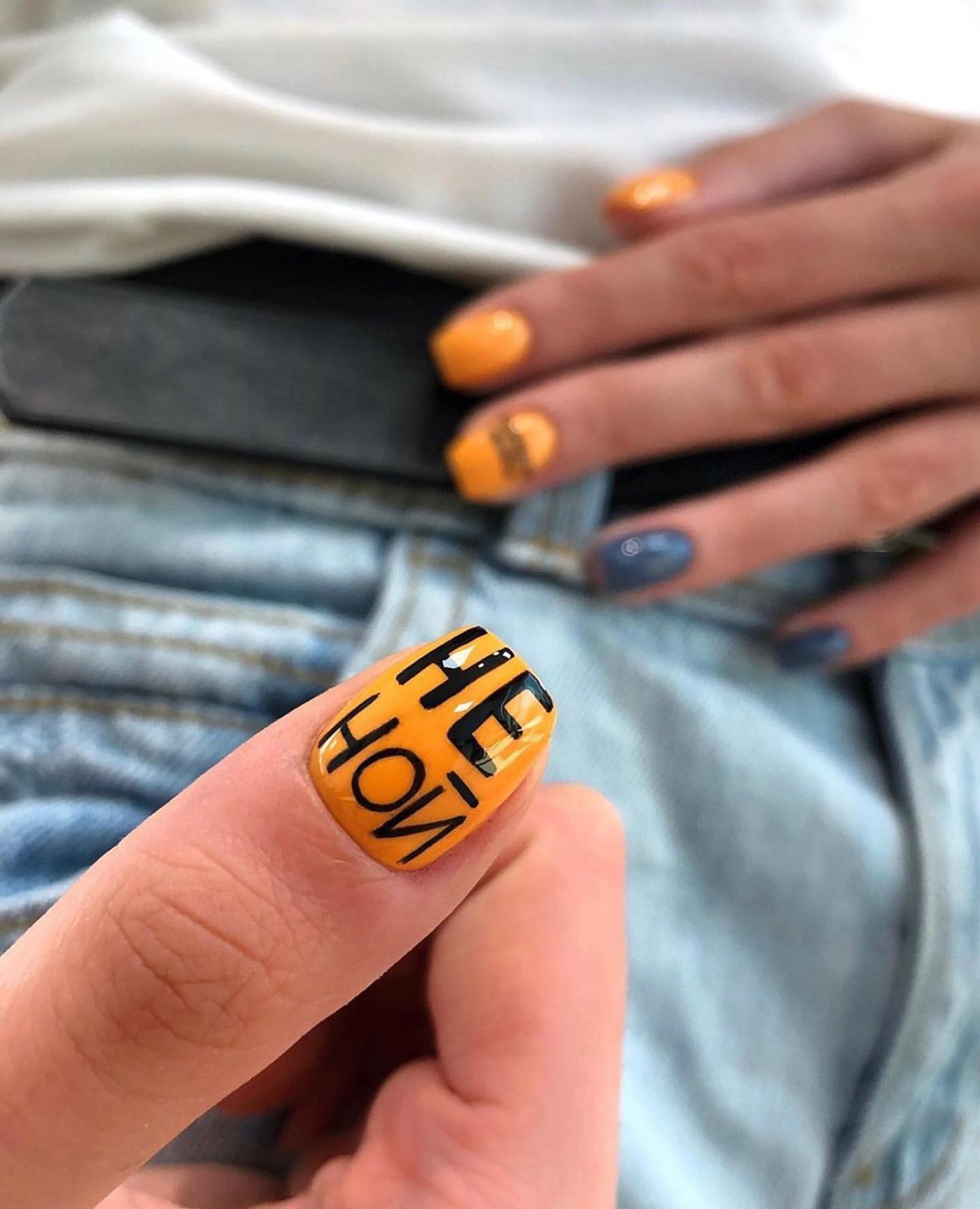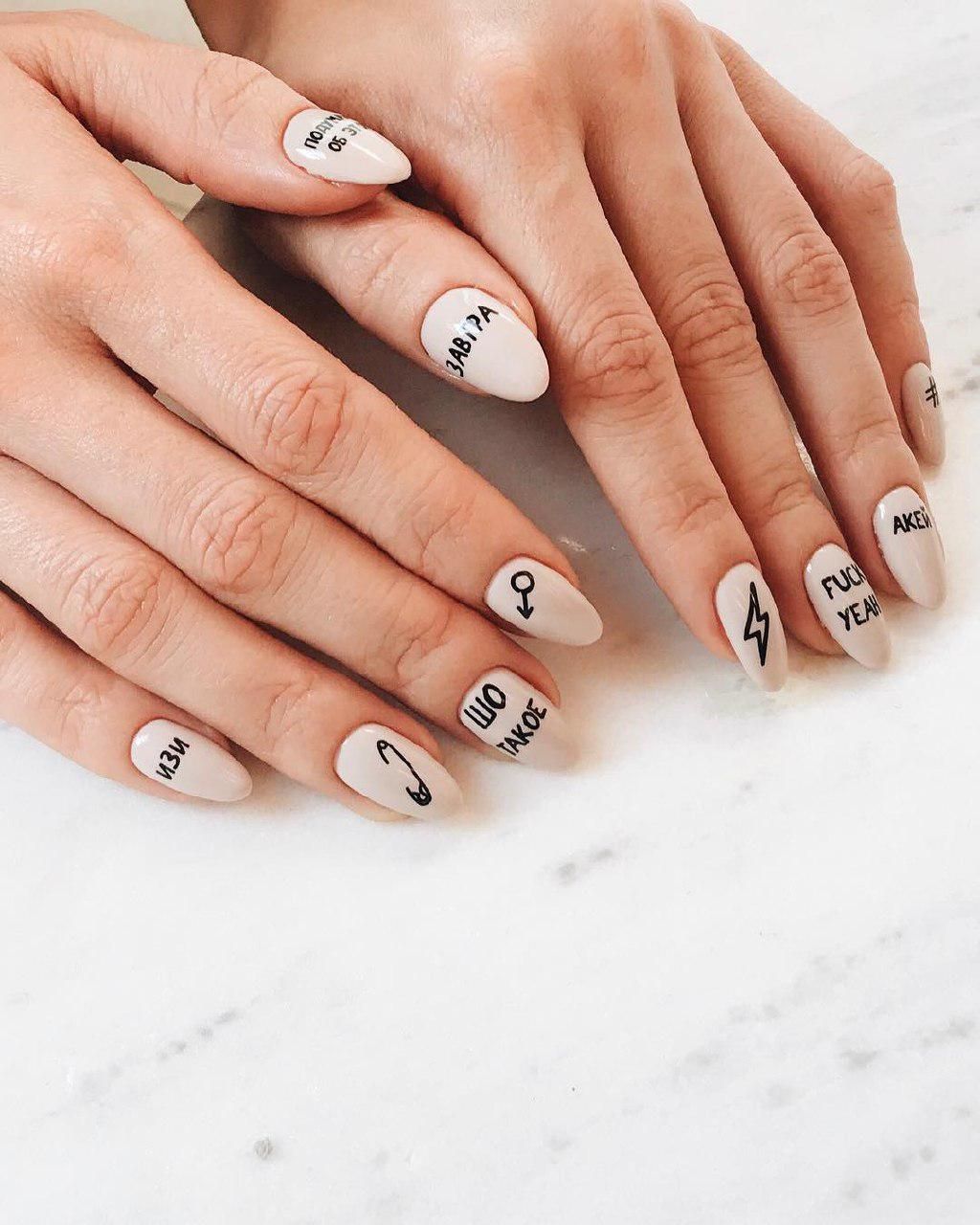 Надписи, слоганы и фразы – вновь на пике популярности. Они украшают футболки, платья, пояски, аксессуары девушек, заявляя о настроении и предпочтениях своей обладательницы. Надписи на ногтях еще долго будут будоражить воображение модниц, ведь с помощью них можно поднять себе настроение, мотивировать себя, показать окружающим свой характер.