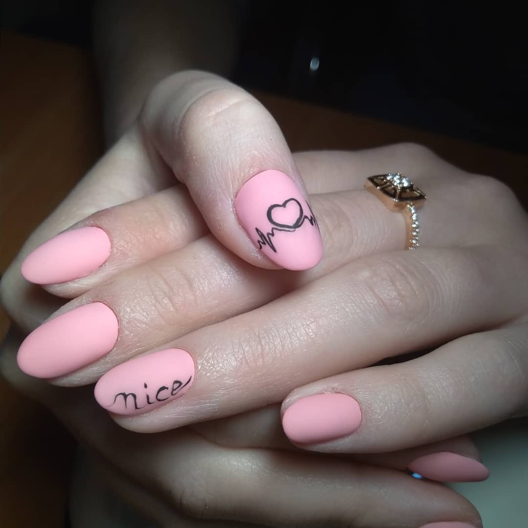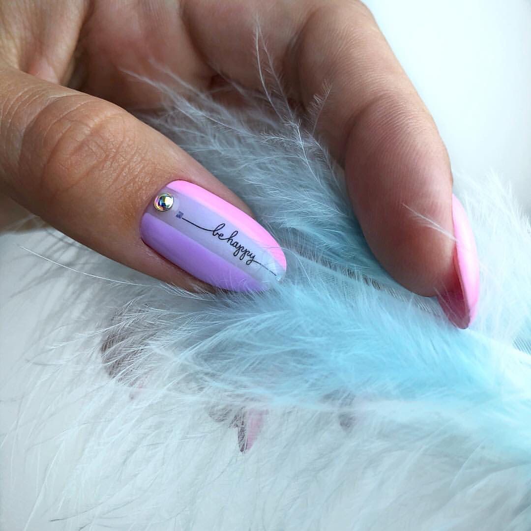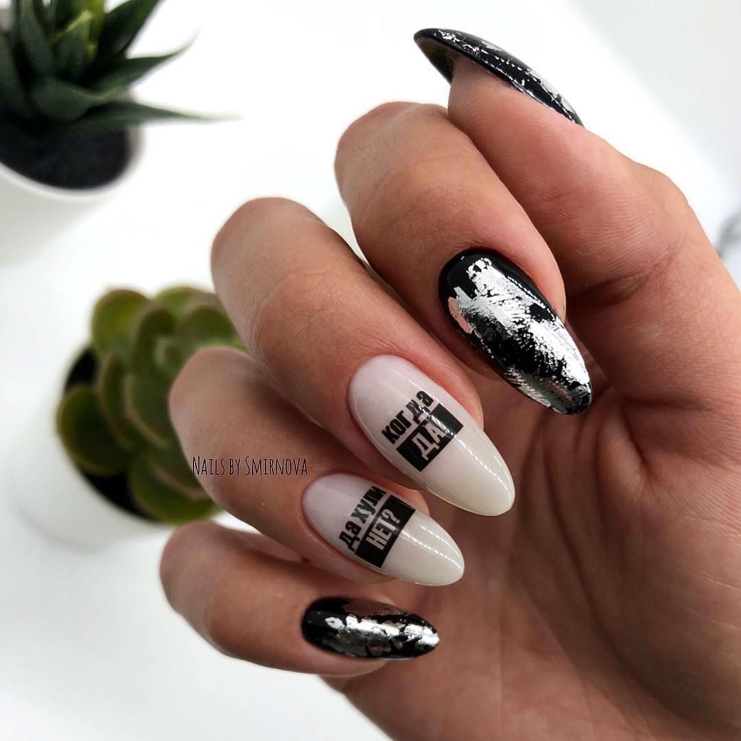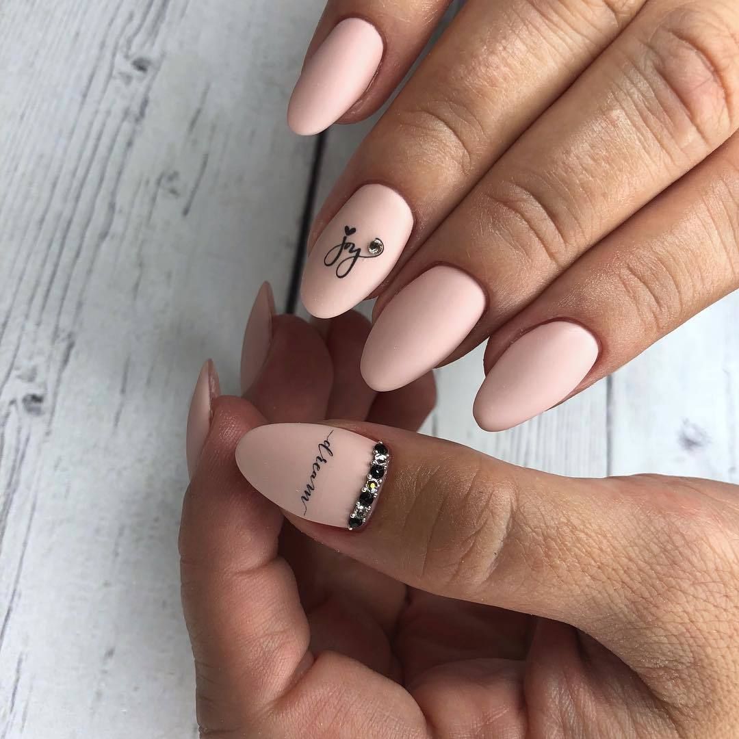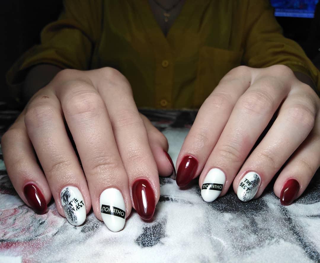 Надписи на русском языке смотрятся не менее привлекательно, чем привычные Love и другие. Изобразите на ногтях любой слоган, который вдохновляет и греет вас. Это могут быть ваши с молодым человеком инициалы, мотивирующие надписи, слоганы, поднимающие настроение и т.д.