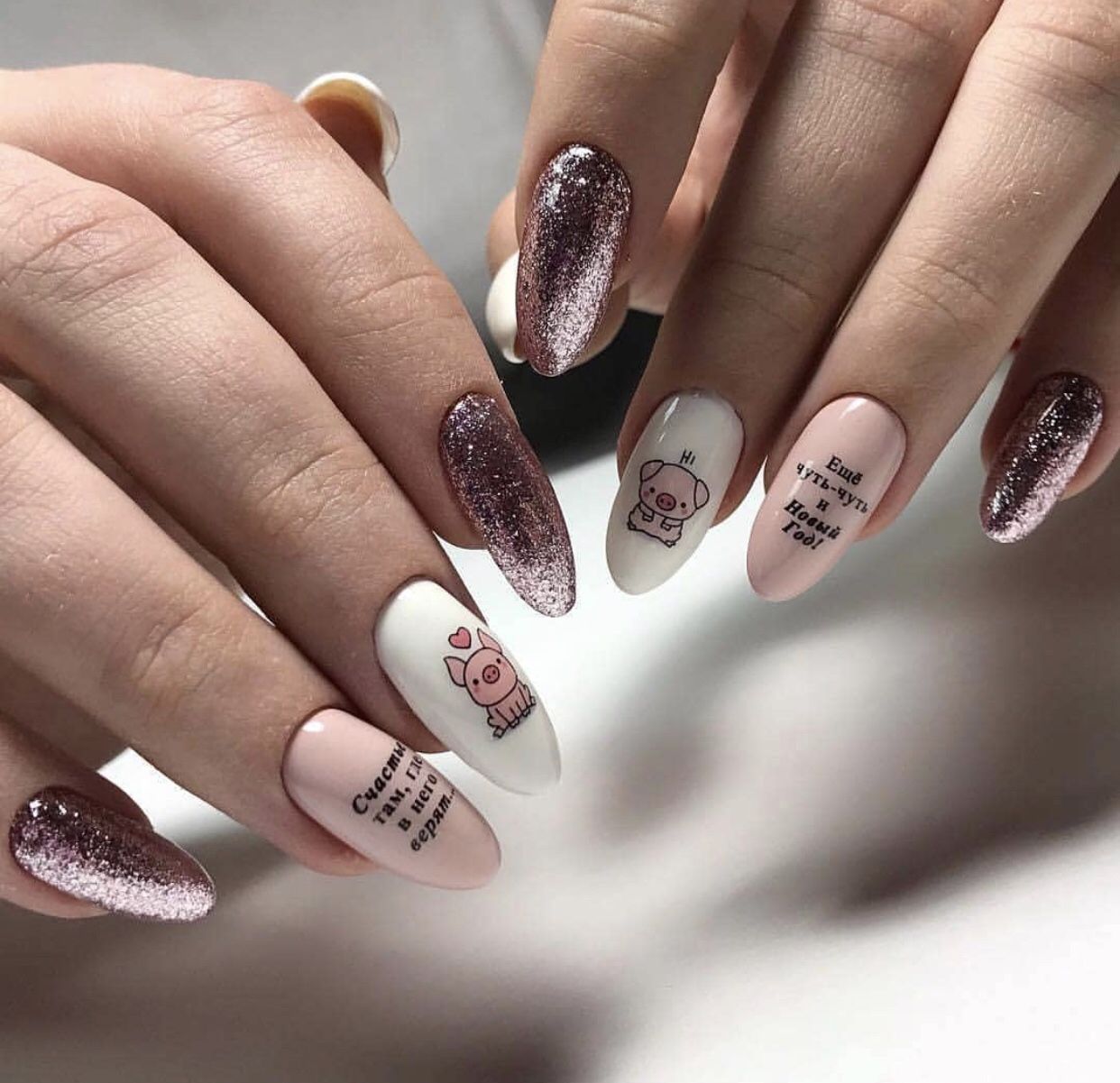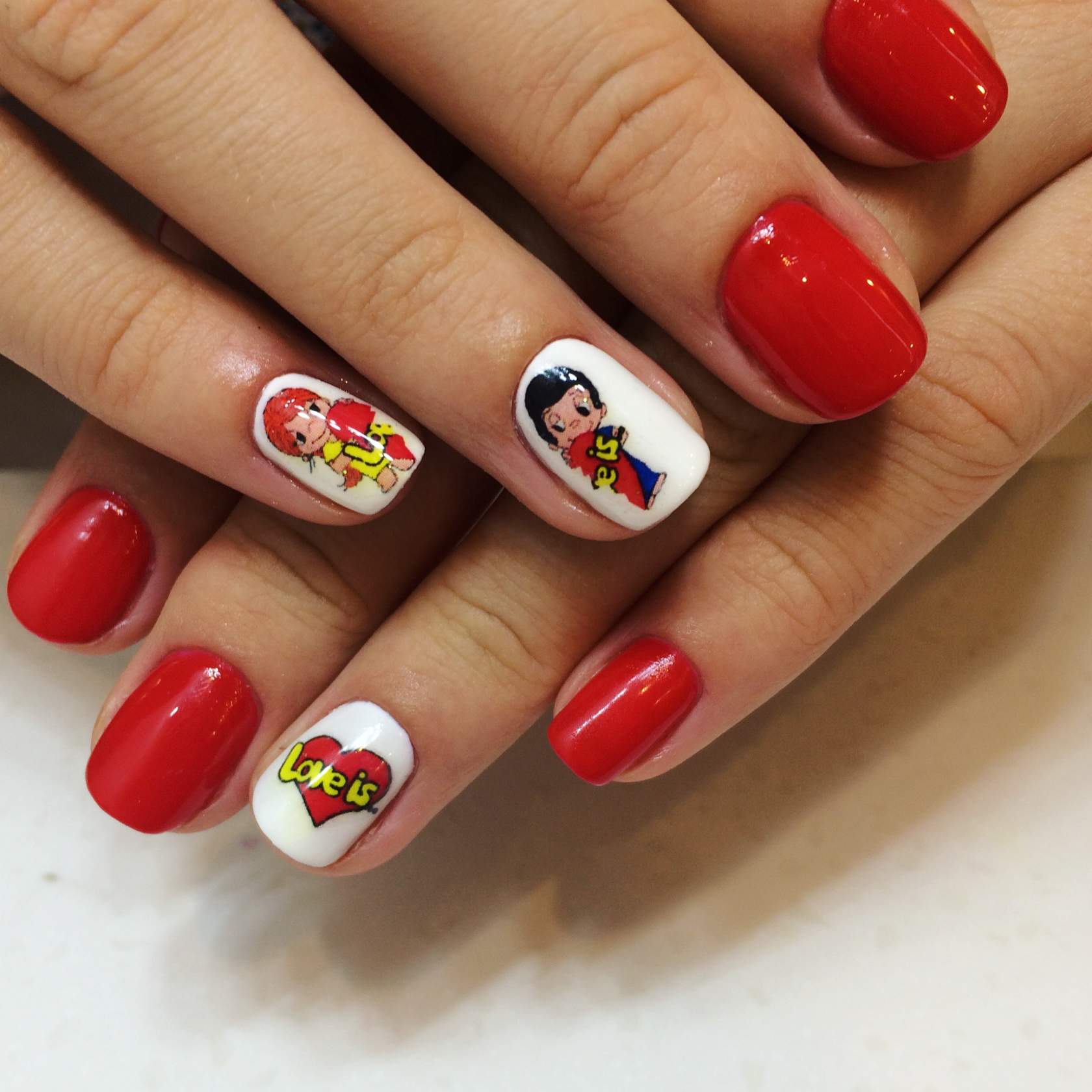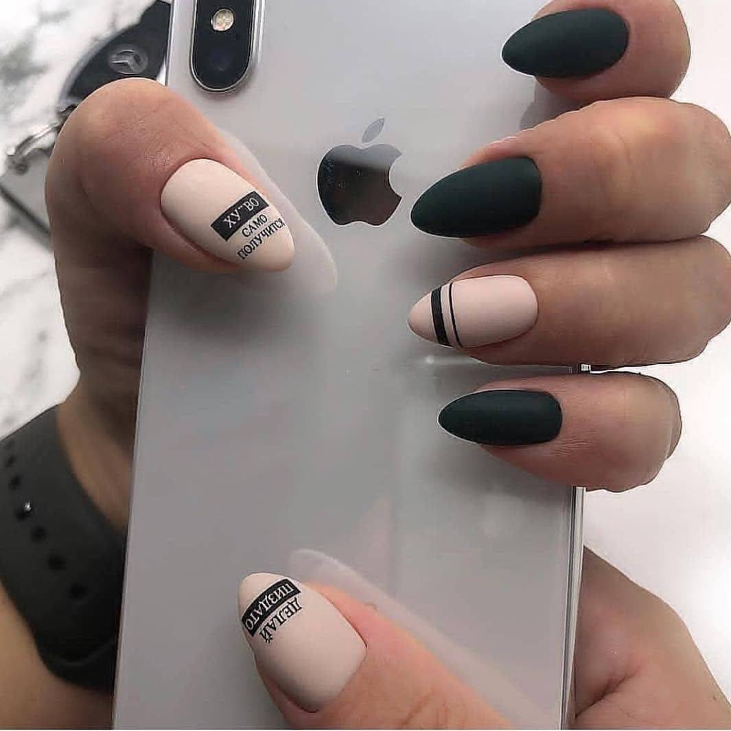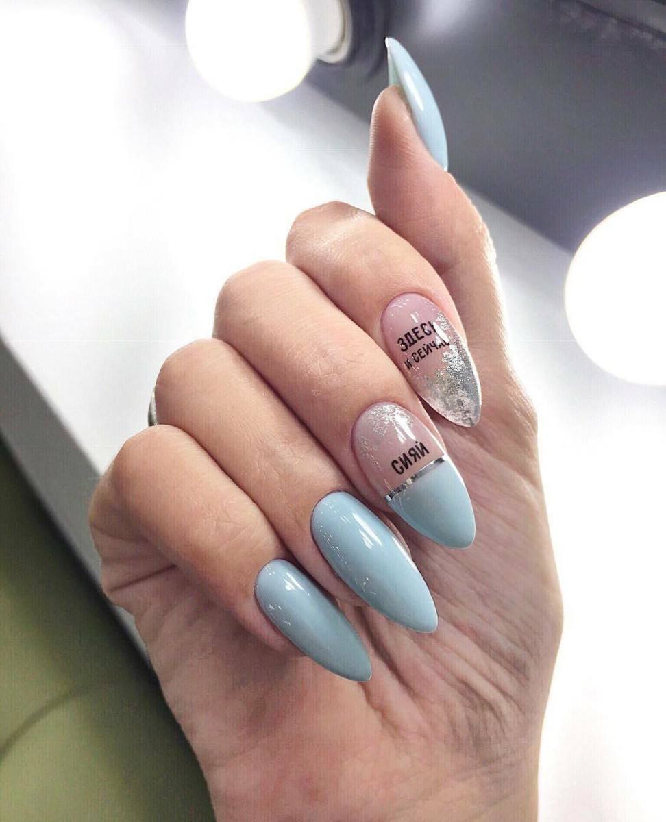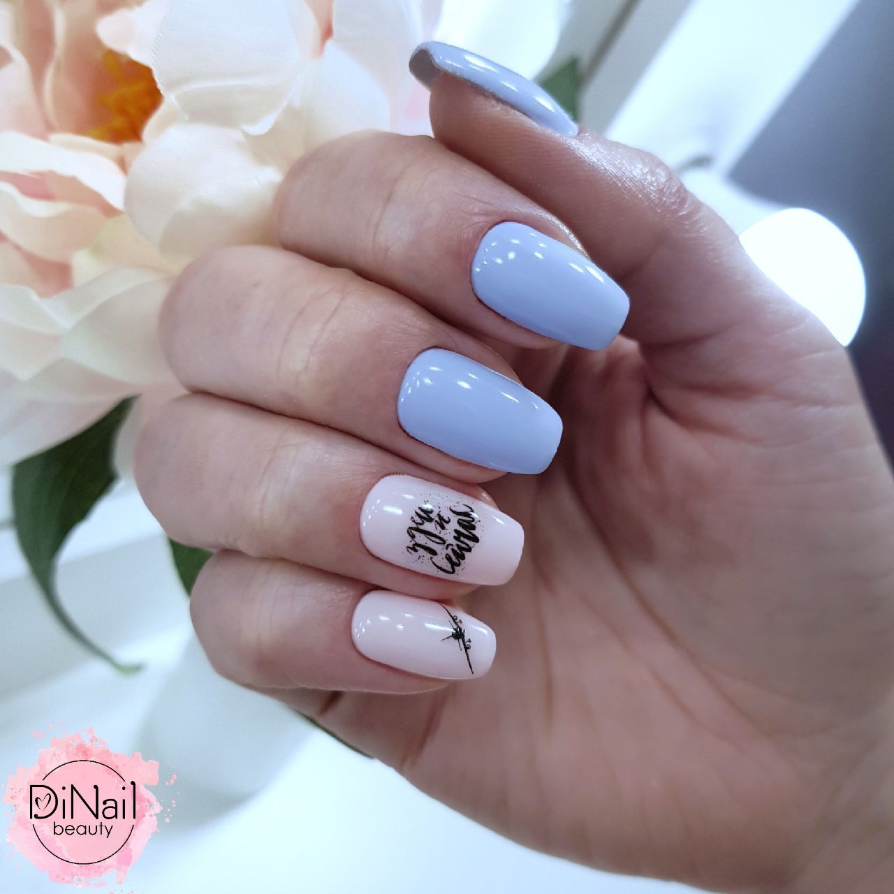 Надписи на русском языке смотрятся не менее привлекательно, чем привычные Love и другие. Изобразите на ногтях любой слоган, который вдохновляет и греет вас. Это могут быть ваши с молодым человеком инициалы, мотивирующие надписи, слоганы, поднимающие настроение и т.д.