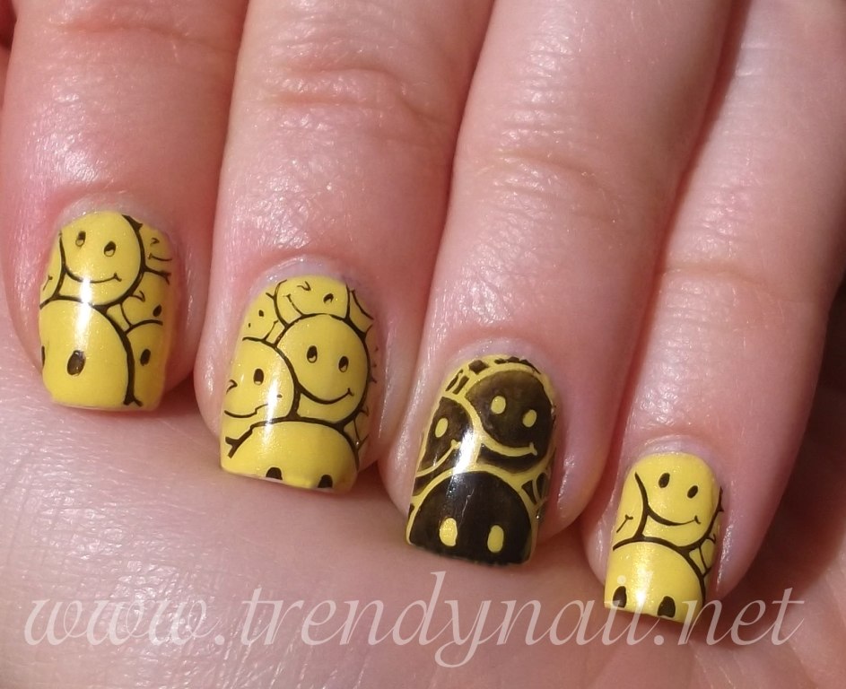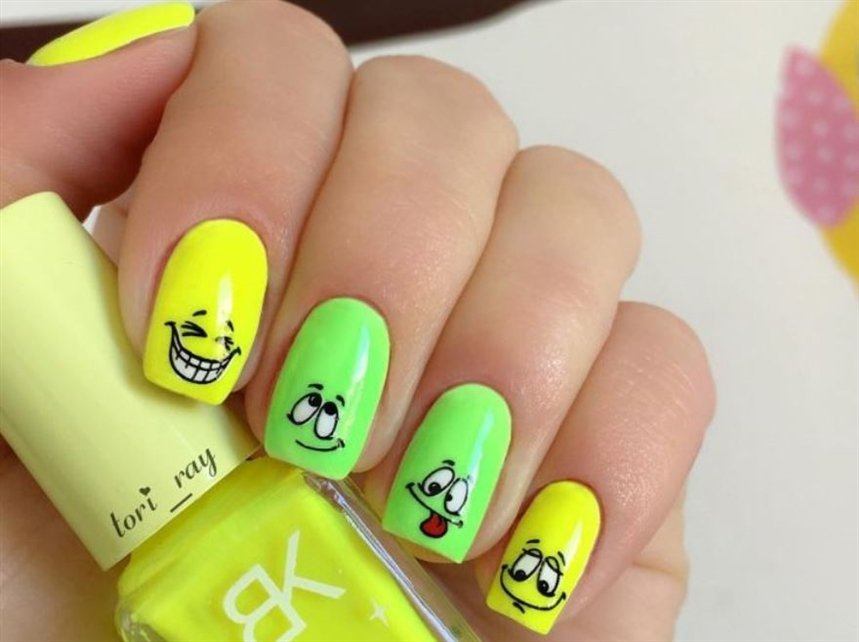 #1 Веселый маникюр со смайлами: улыбчивый узор на ноготках
