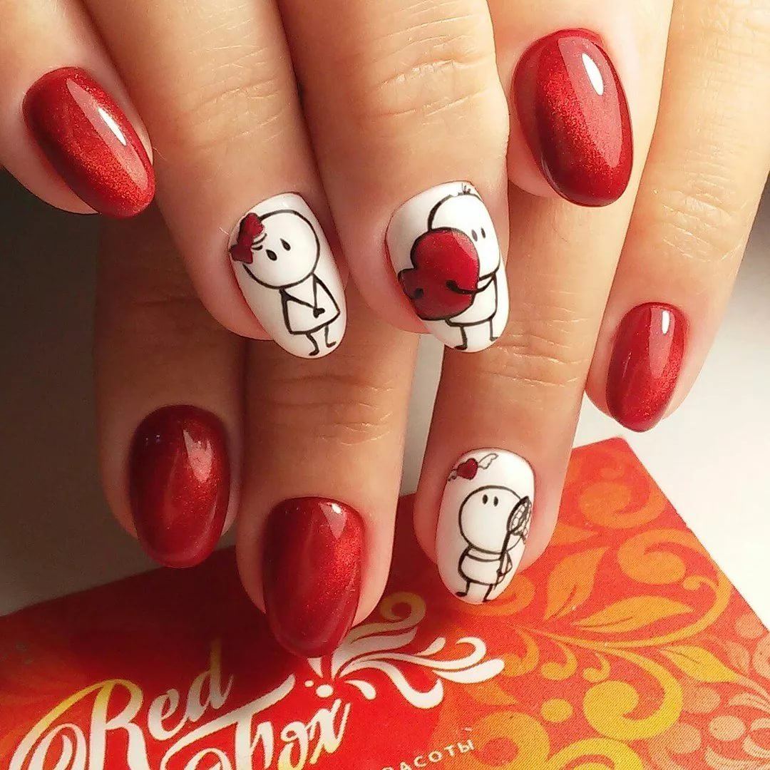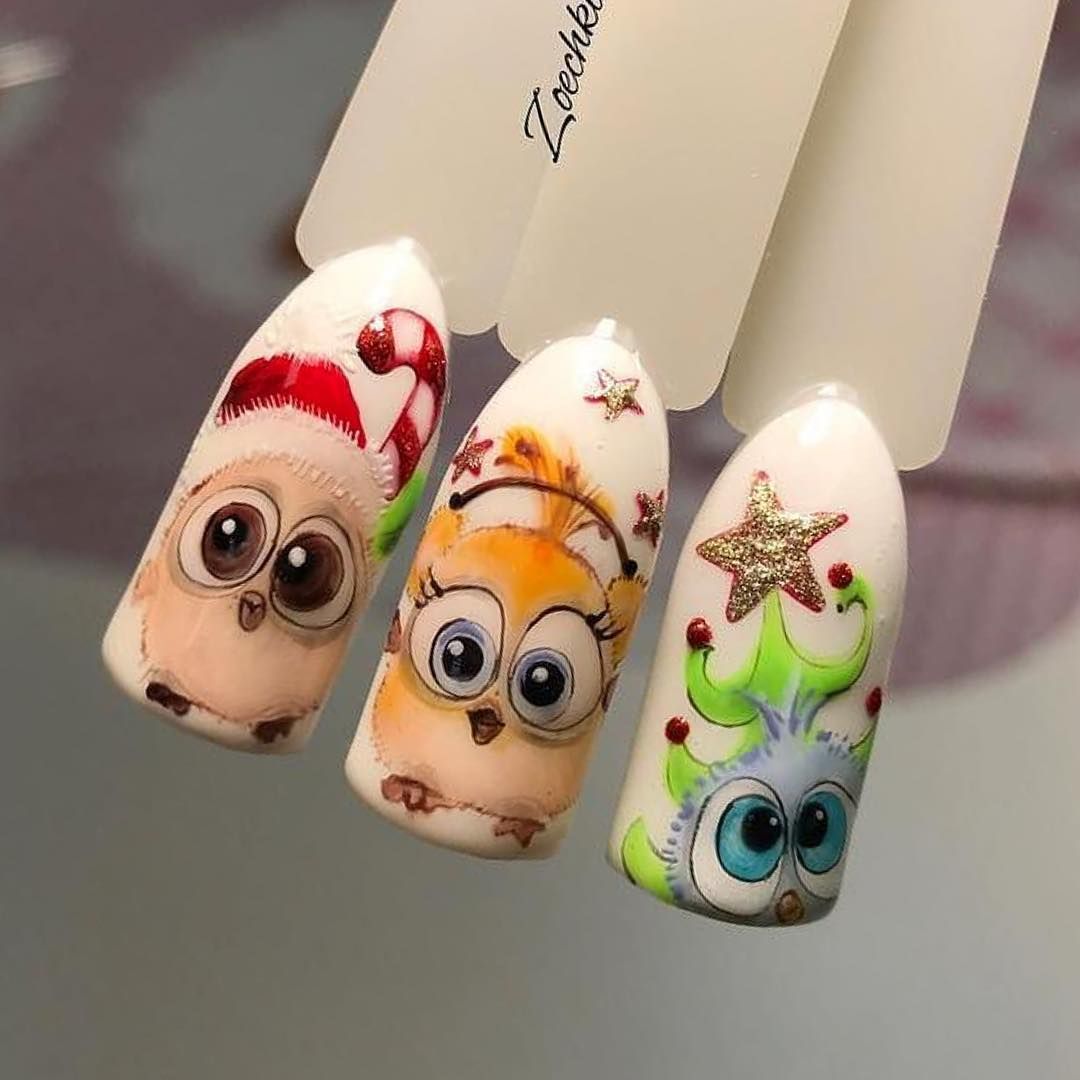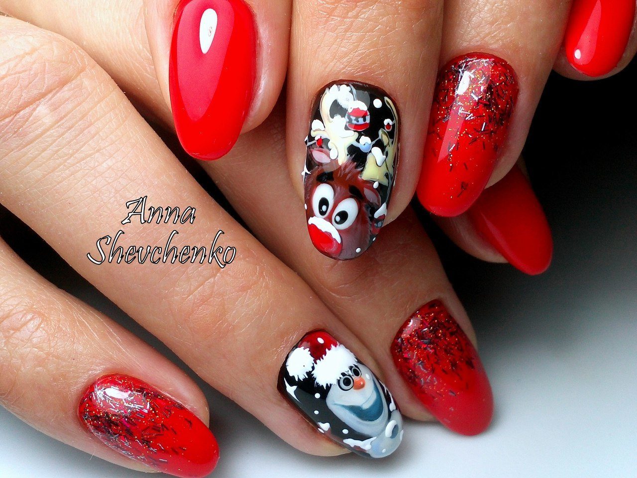 Тем, кто предпочитает праздновать Новый год дома, в кругу семьи и надевать одинаковые свитера, стоит присмотреться к другим, более смелым вариантам. На ноготках можно изобразить рисунок в виде оленей, снеговиков и снежинок. Это один из самых популярным праздничных вариантов декора. Но чтобы такой маникюр хорошо сочетался с образом, лучше выбирать основной цвет лак в тон наряду.