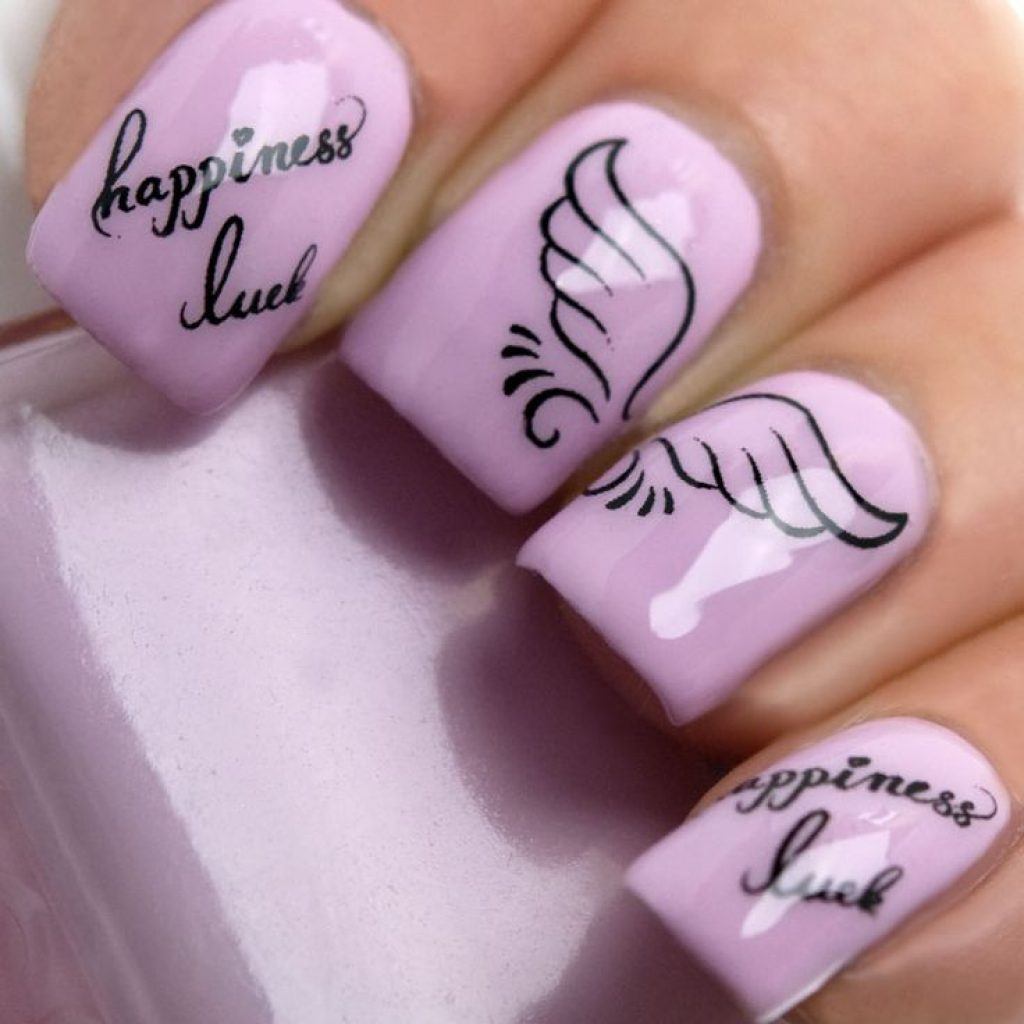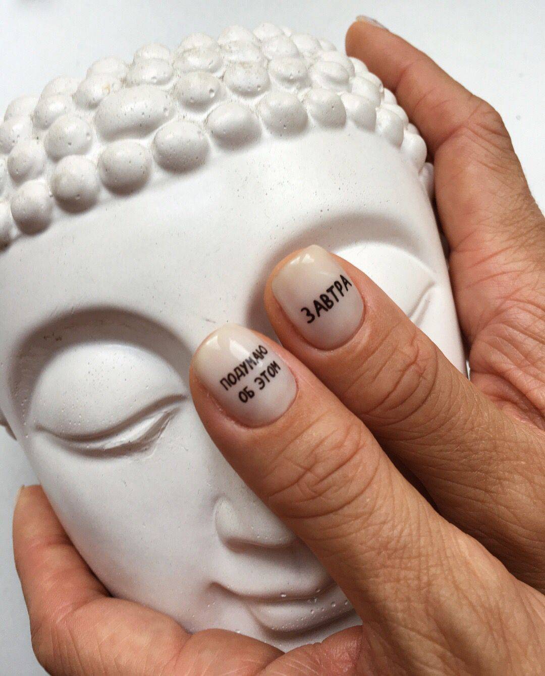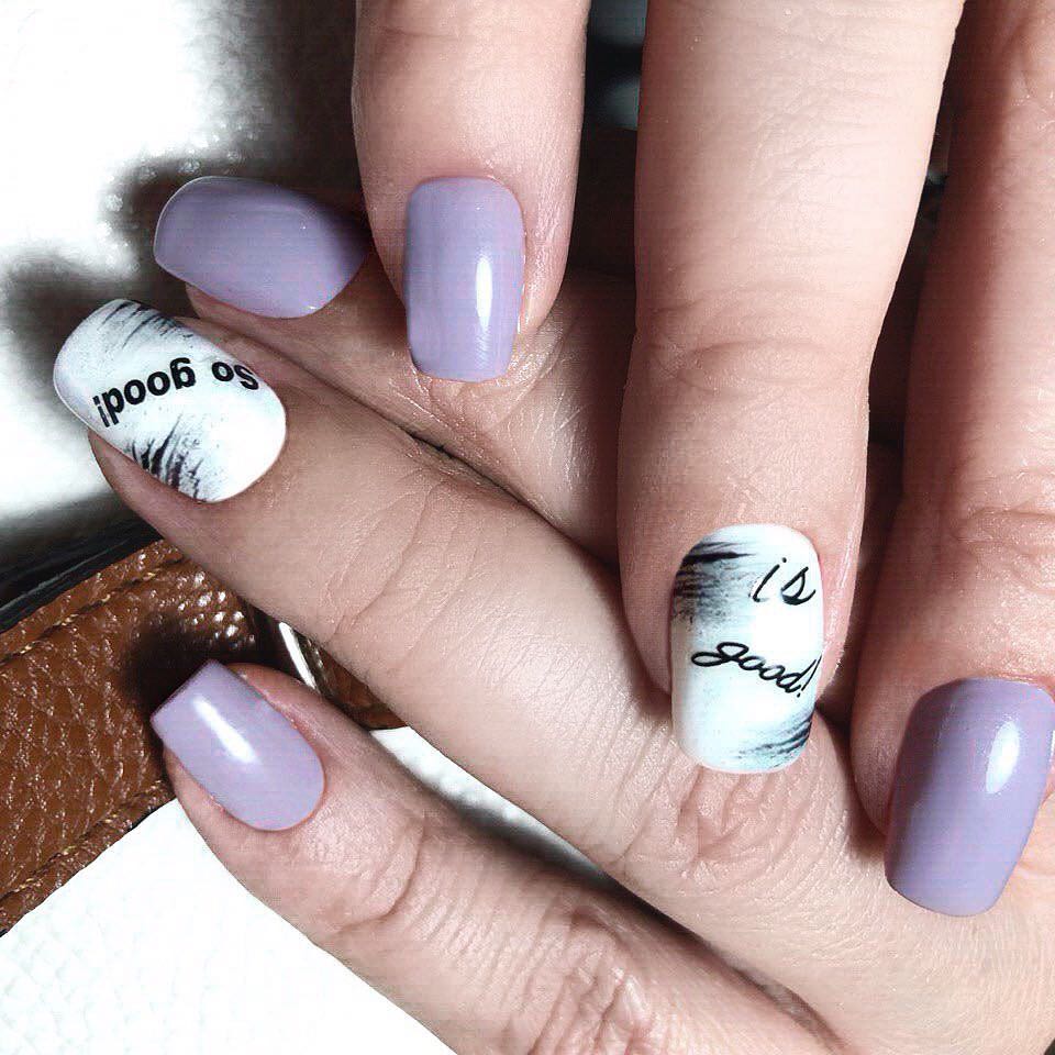 Дизайн с надписями впервые появился на ноготках американок, которые знают толк в самомотивации. Русскоязычные модницы быстро переняли идею с надписями и стали украшать ноготки слоганами и надписями.