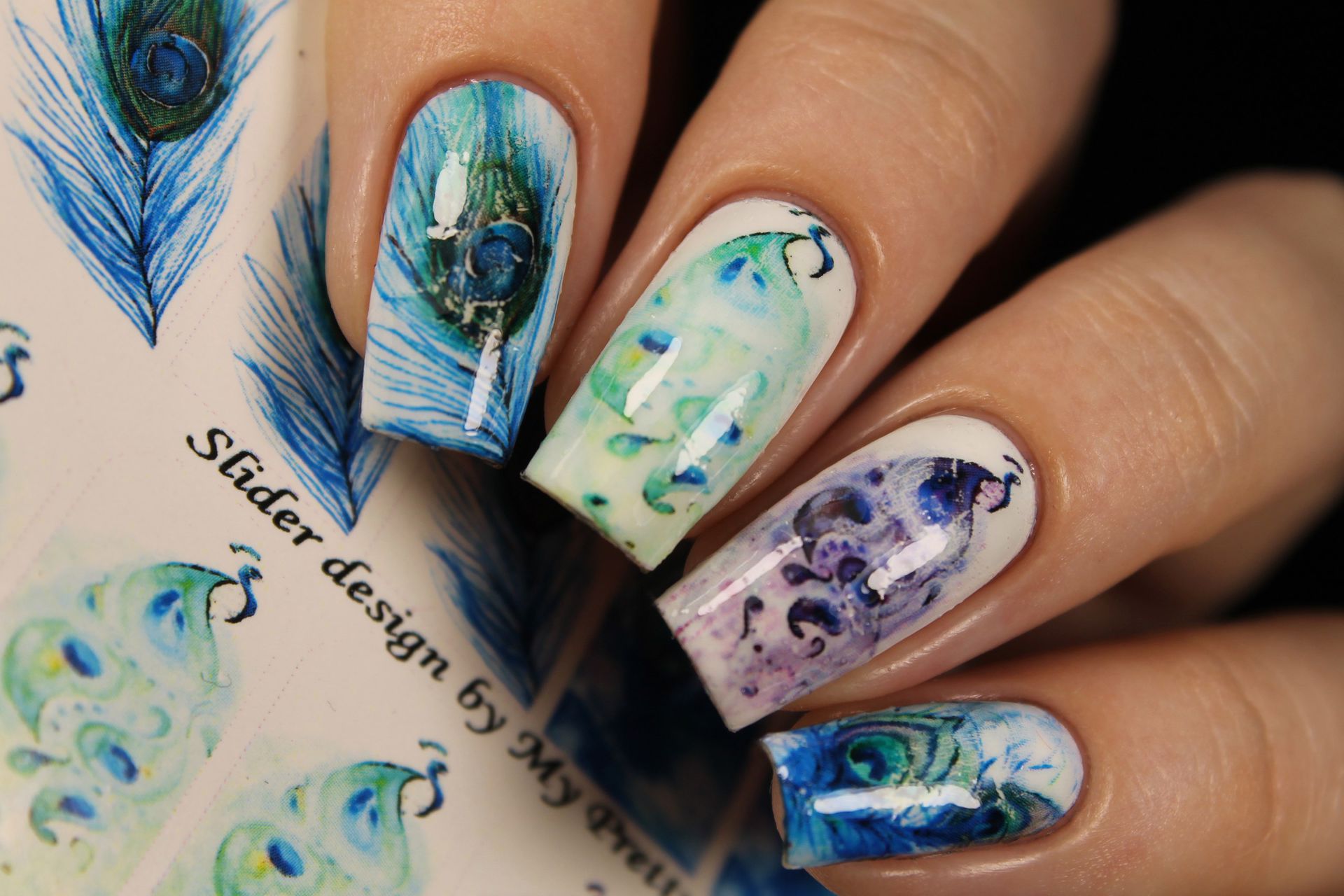 Слайдеры – простой и экономный способ декора ногтей. Слайдеры представляют собой обычные наклейки, но выполнены они на очень тонкой подложке. В дизайне можно использовать как сплошное покрытие ногтей слайдерами, так и вырезать отдельные детали рисунка и использовать их в комбинированном маникюре.