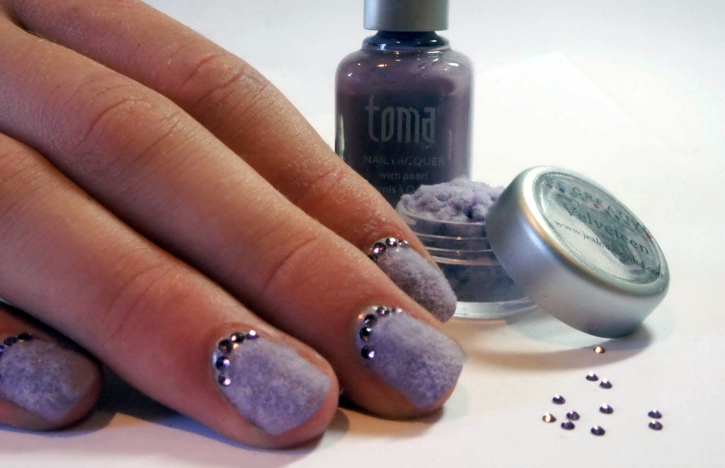- Тут же, не просушивая, посыпать ноготь акриловой пудрой.