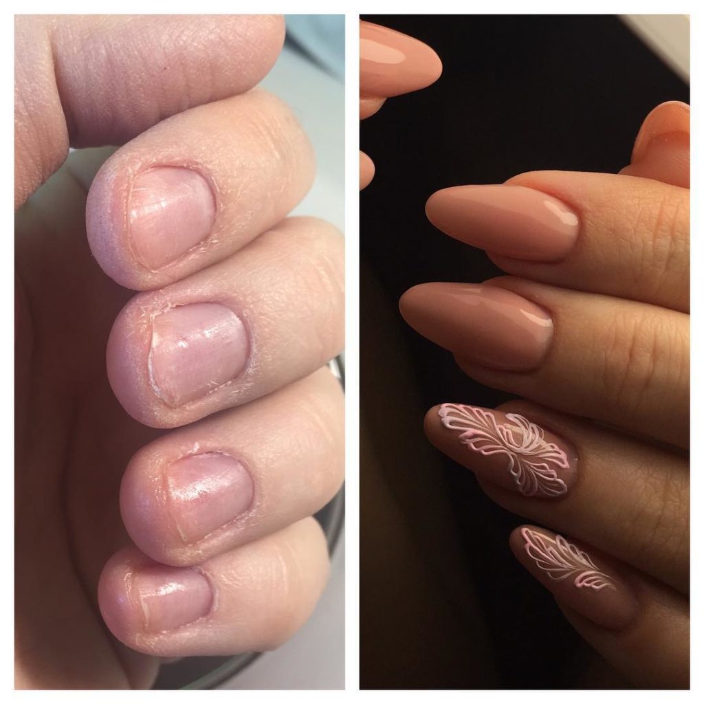Используя этот принцип, укрепляют хрупкие тонкие ногтевые пластины. Выполняют процедуру без форм, повторяя все шаги. Собственные ноготки будут отличаться плотностью, меньше повреждаться и портить маникюр.