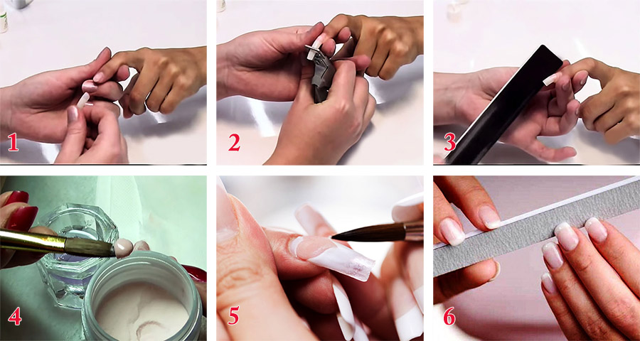 После того, как инструменты и материалы для работы с акрилом в домашних условиях приобретены, можно приступать к основной части работы — наращиванию ногтей.