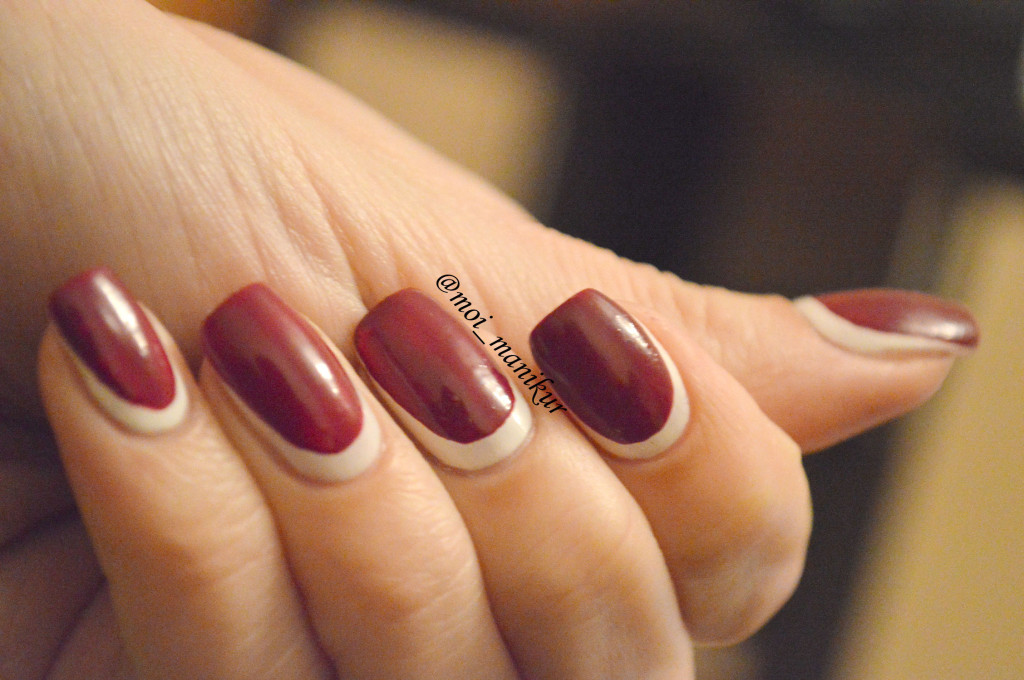 Этот способ кажется проще тем, что не нужно стараться вырисовывать ровную линию у кутикулы тонкой кисточкой. Однако нюансы остаются все те же: