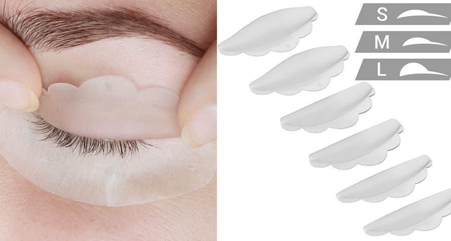 - Силиконовую подушечку нужного размера приклеивают на верхнее веко максимально близко к линии роста ресниц.