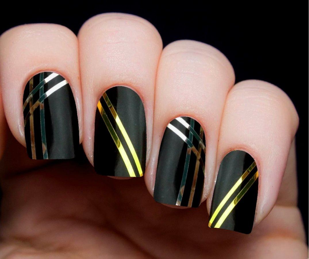 В мире нейл-арта скотч-лента используется довольно давно. Прозрачный вариант мастера используют для разделения ногтевой пластины на зоны во время работы. Цветные и блестящие ленты выбирают преимущественно для декора. Это может быть негативное пространство или необычный геометрический дизайн.