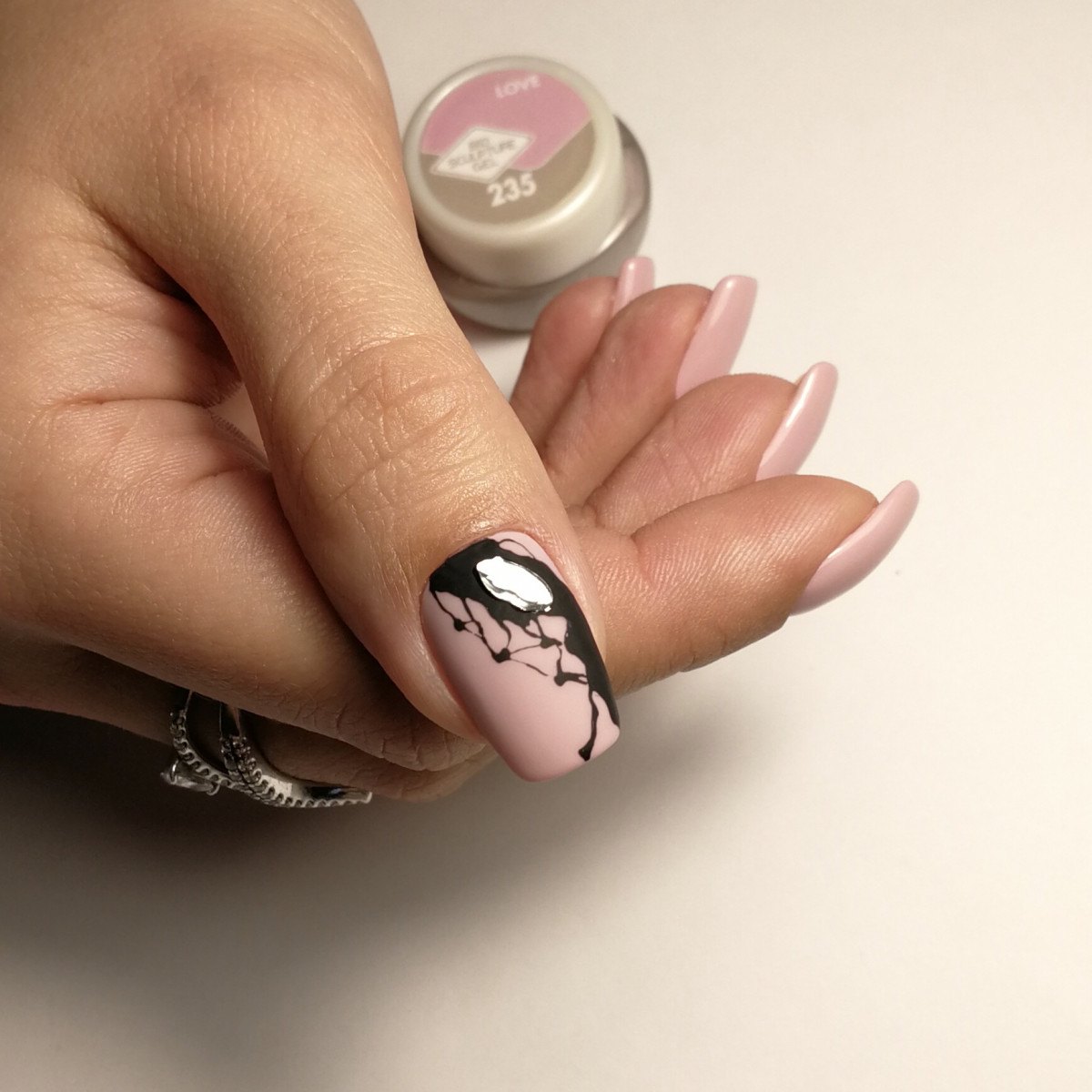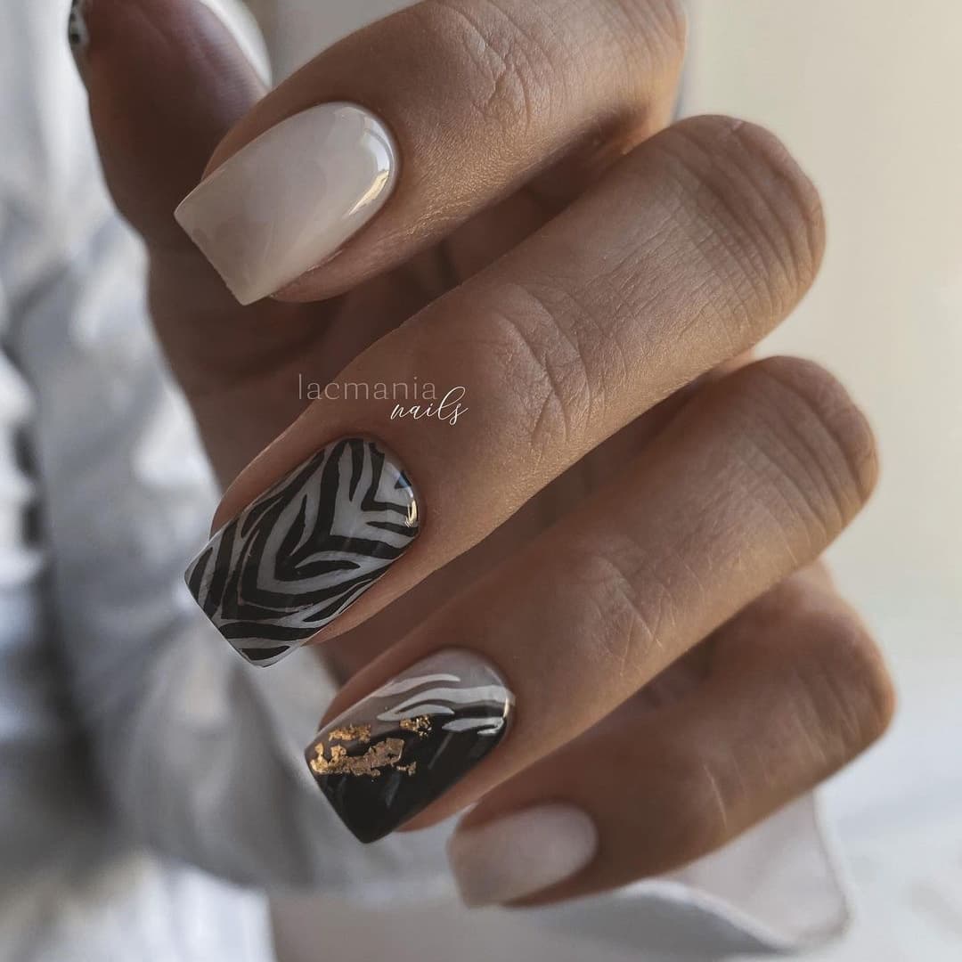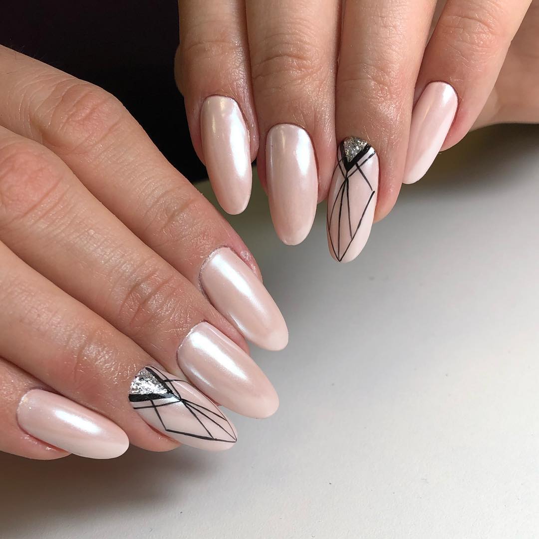 Геометрический орнамент прекрасно дополняет монохромную гамму, при этом оставляя маникюр таким же сдержанным, строгим. Особенно элегантно выглядят фигуры и линии, нанесенные черными красками, на нюдовой поверхности. Это оптимальный выбор для тех, кто ценит изысканность простых решений.