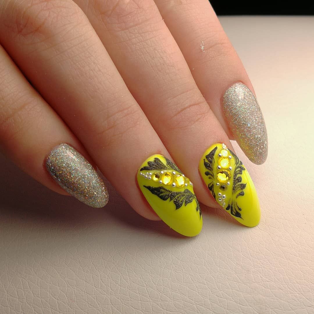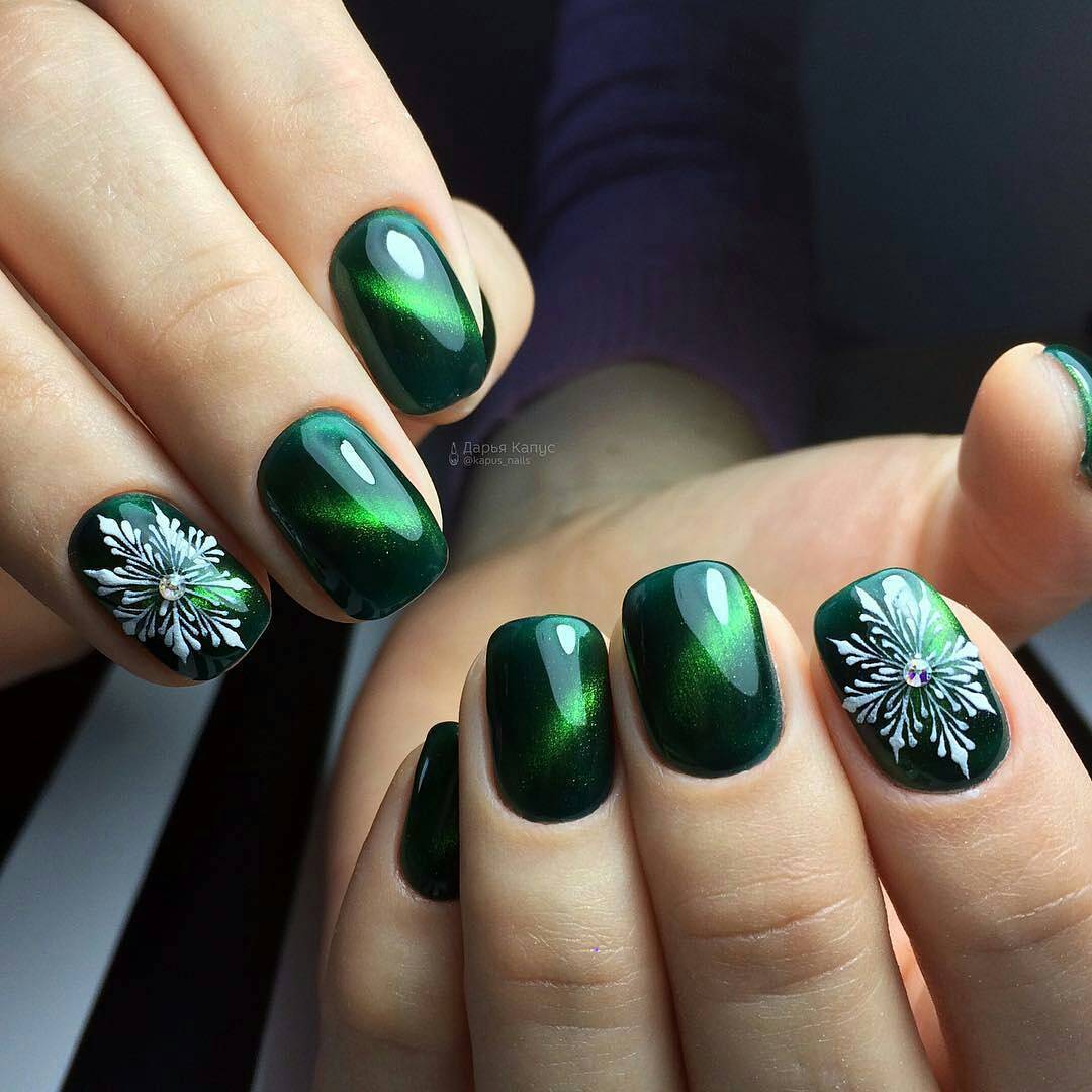 Среди актуальных вариаций дизайна в этом сезоне большой популярностью пользуются флористические мотивы и геометрия, абстракция и сезонные изображения. А также фольга, глиттер, стразы и прочие декоративные украшения.