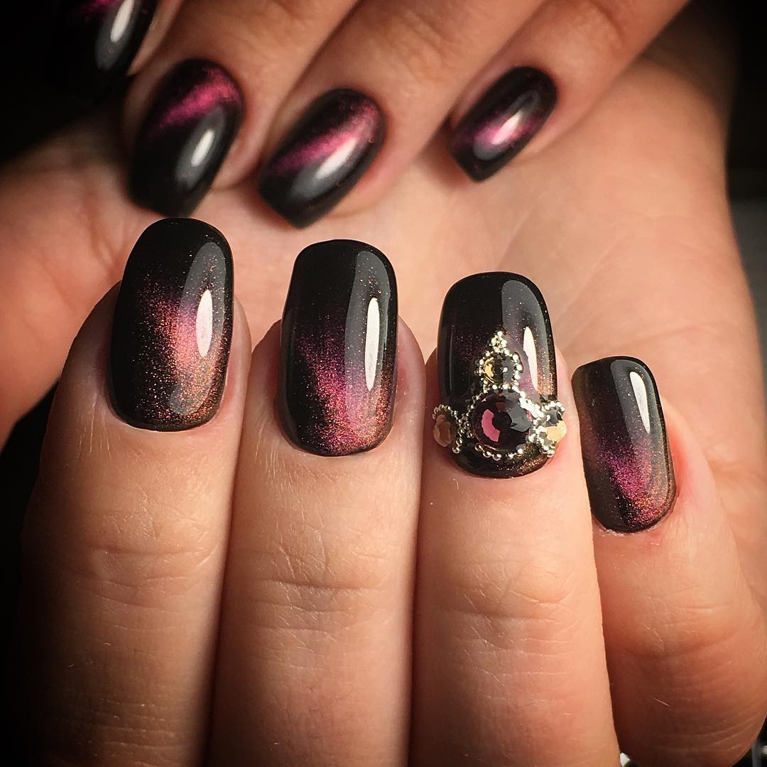 Для создания «кошачьего» маникюра необходимы специальные магниты, обычные не подойдут. С помощью них создаются необычные узоры и переплетения магнитных частичек.