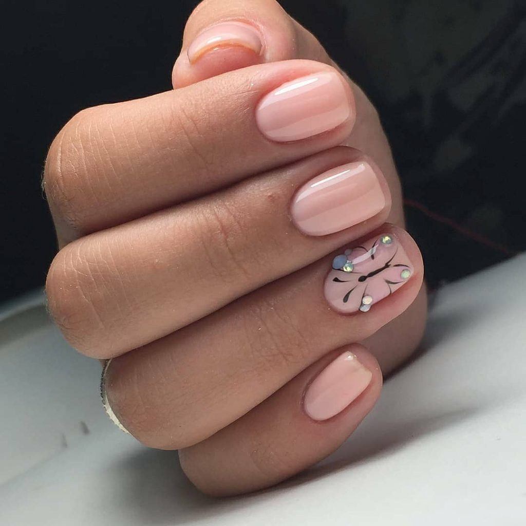В качестве декора натурального маникюра часто и оправданно используются небольшие одиночные бусины или жемчужинки, миниатюрные декоративные камешки разных оттенков. Натуральный маникюр – отличная основа для декорирования ногтя наклейками, которые аккуратно располагают на гель-лаке перед покрытием топом. В особых случаях можно использовать и более выразительные способы декора. Маленькие цветы и фигурки из глины фимо, сияющая разноцветная зеркальная втирка на одном или нескольких ногтях, небольшое количество блесток – все это даст возможность создать неповторимый уникальный дизайн для особенного случая.