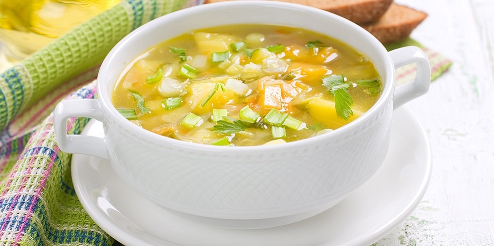 Второй день: завтрак – суп, обед – суп и зеленые овощи, ужин – суп, 1 печеный картофель с небольшим количеством растительного масла.
