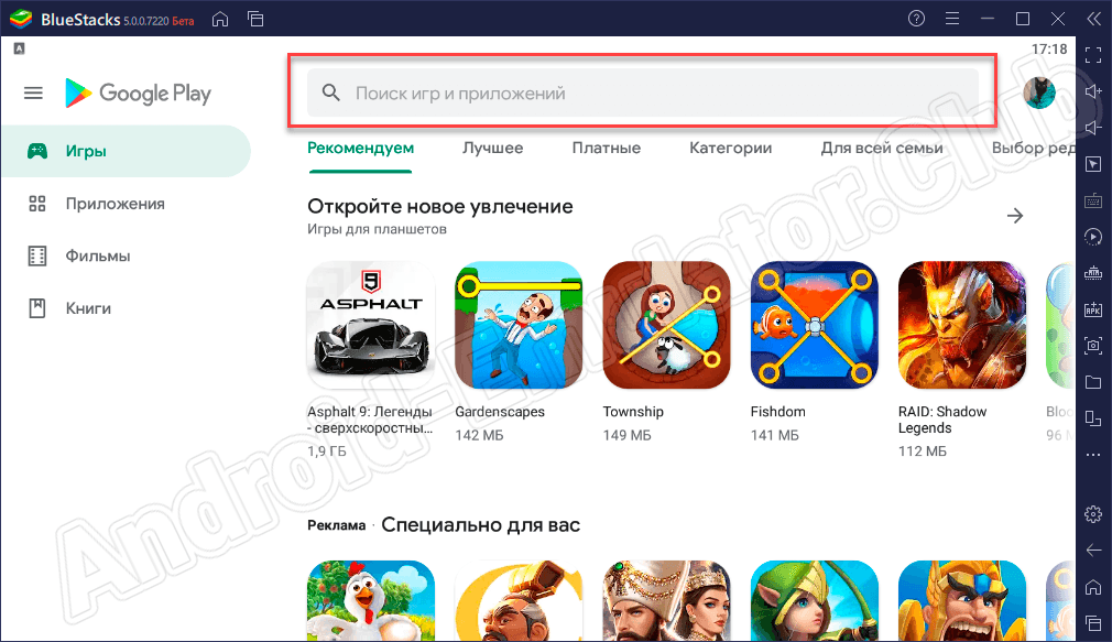 - Запускаем эмулятор и с него переходим в официальный магазин Google.