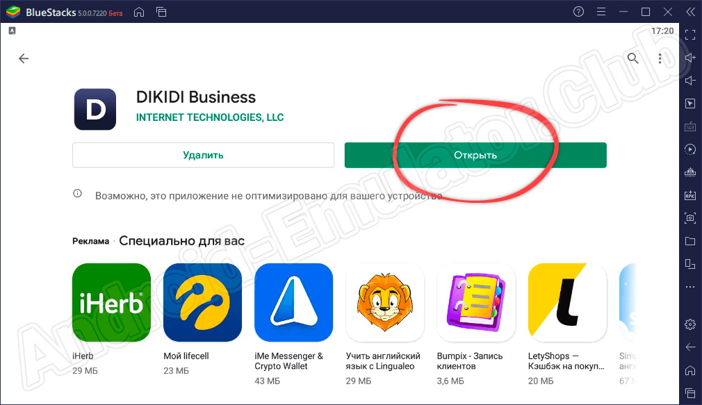 - При последующем запуске к работе с программой можно переходить прямо с домашнего экрана эмулятора.