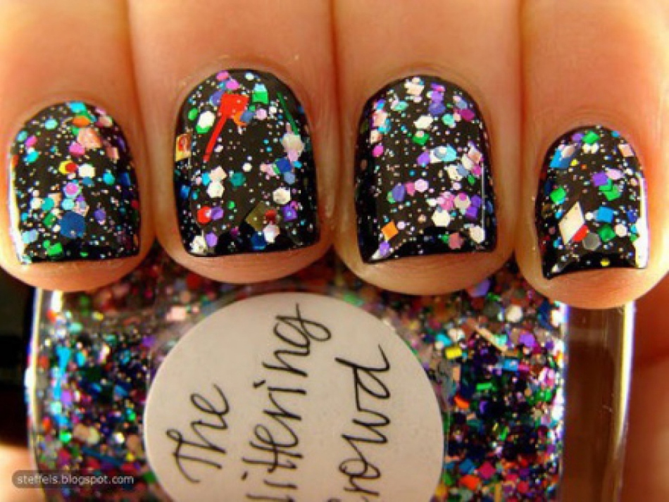 черный лак с разноцветными блестками