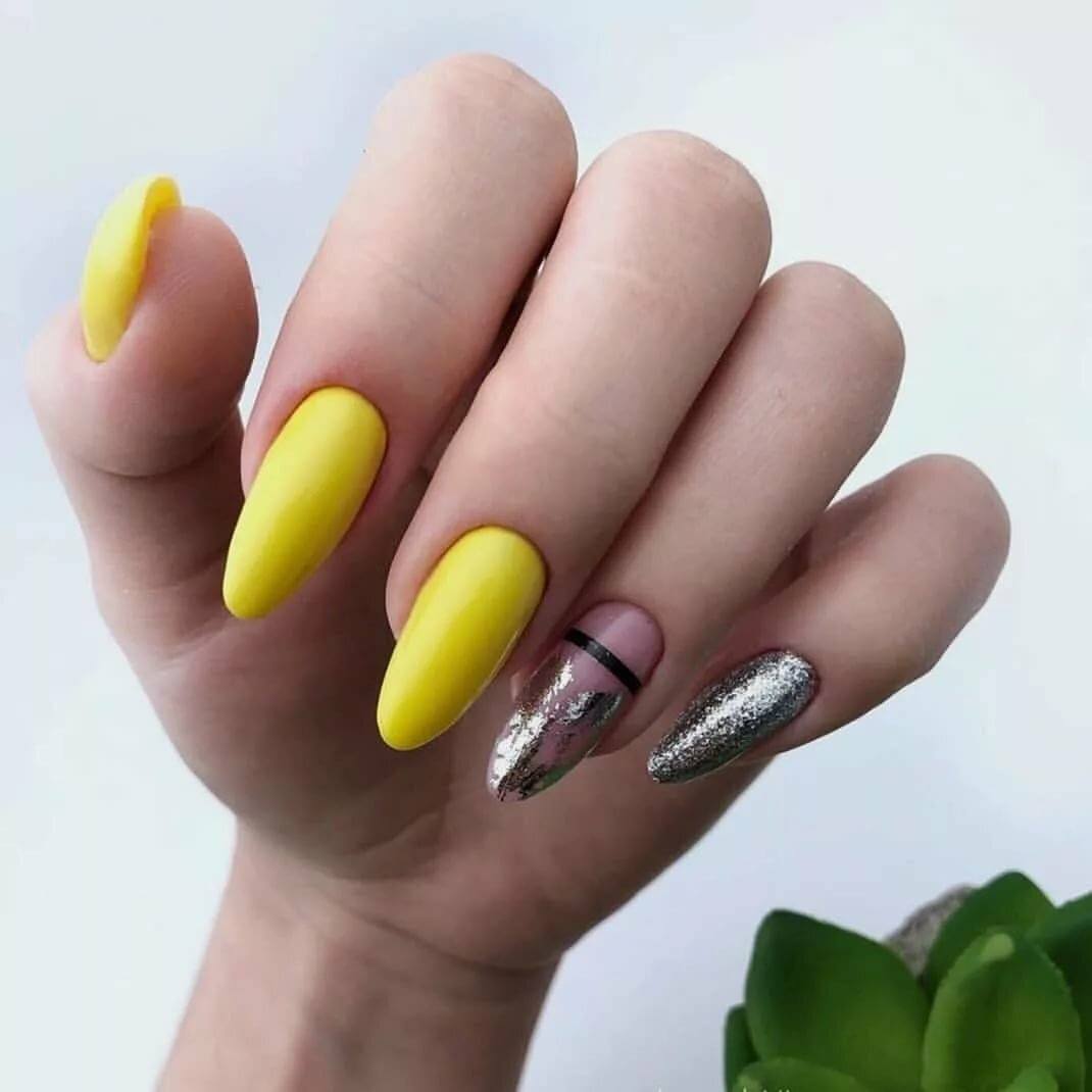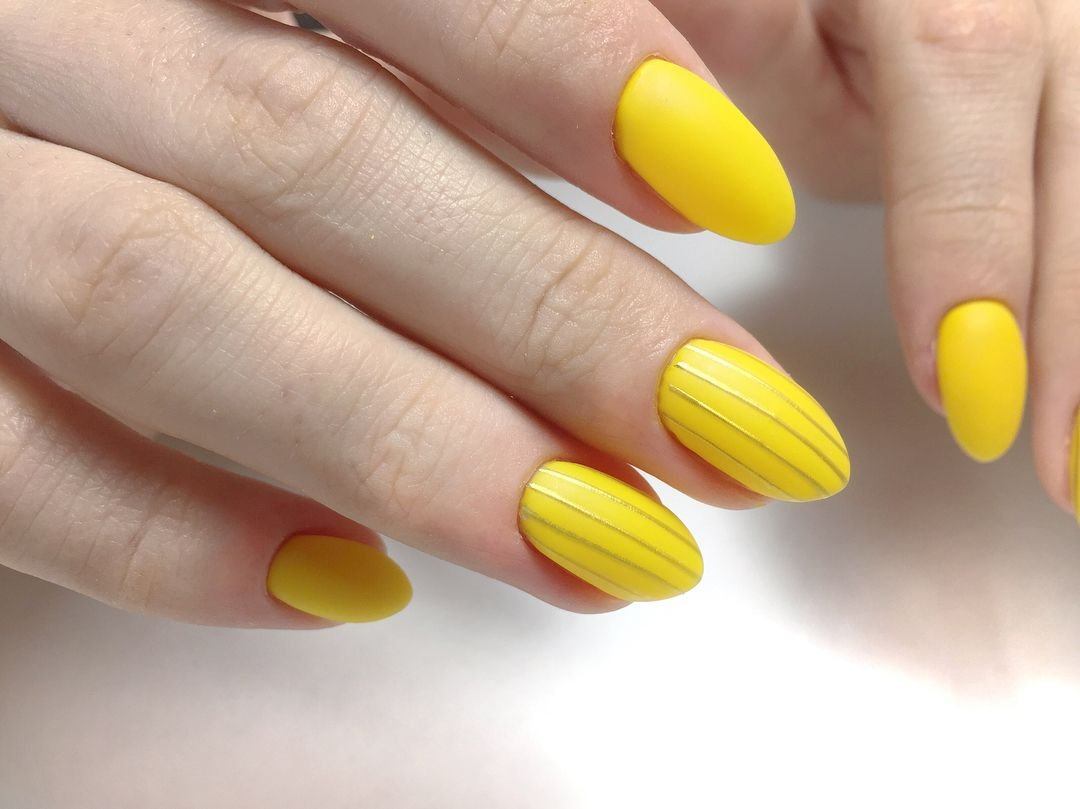 Маникюр желтый матовый
