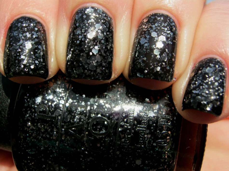 черный лак с темно-серыми блестками маленького и крупного размера