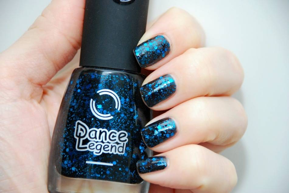 черный лак ,украшенный ярко-синими блестками