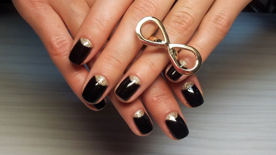 Черные ногти с блестками, фото маникюра