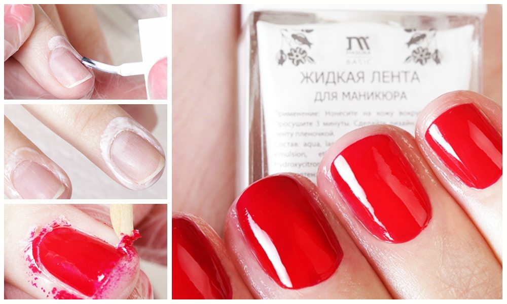 - Рекомендуем вам воспользоваться маленькой хитростью: чтобы ваш дизайн всегда получался безупречным, вам нужна жидкая лента для маникюра. Она напоминает обычный лак для ногтей, наносится подобной кистью, но не на ноготок, а на кожу вокруг него. После этого выполняется выбранный дизайн, например, маникюр с полосками. Когда нейл-арт будет завершен, жидкая лента удаляется с кожи пленочкой, а вместе с ней удаляются погрешности вашей работы. Цена этого покрытия около 500 рублей.