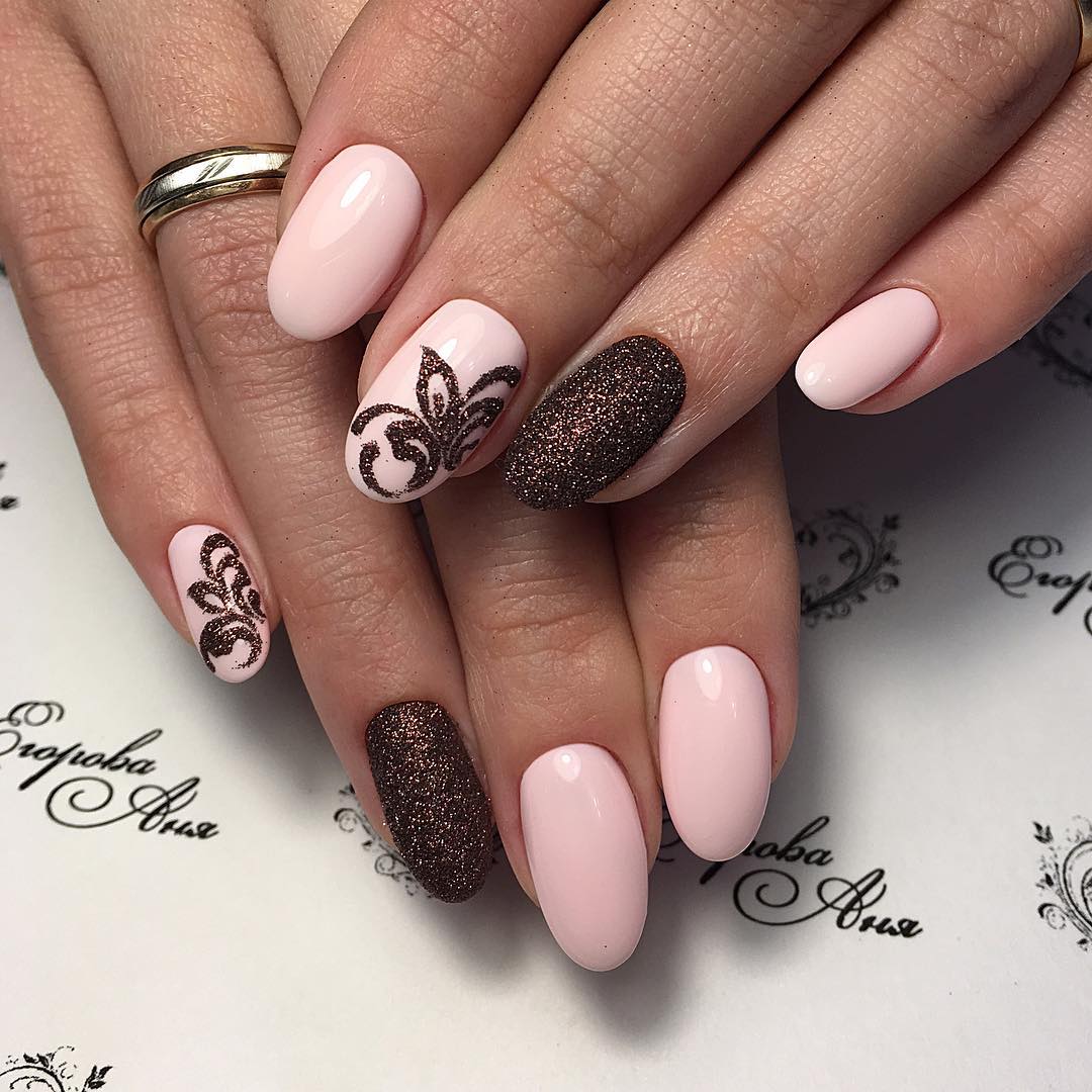Благодаря теплой цветовой палитре этот маникюр идеально подходит для осеннего периода года, хотя и в другое время смотрится весьма неплохо.