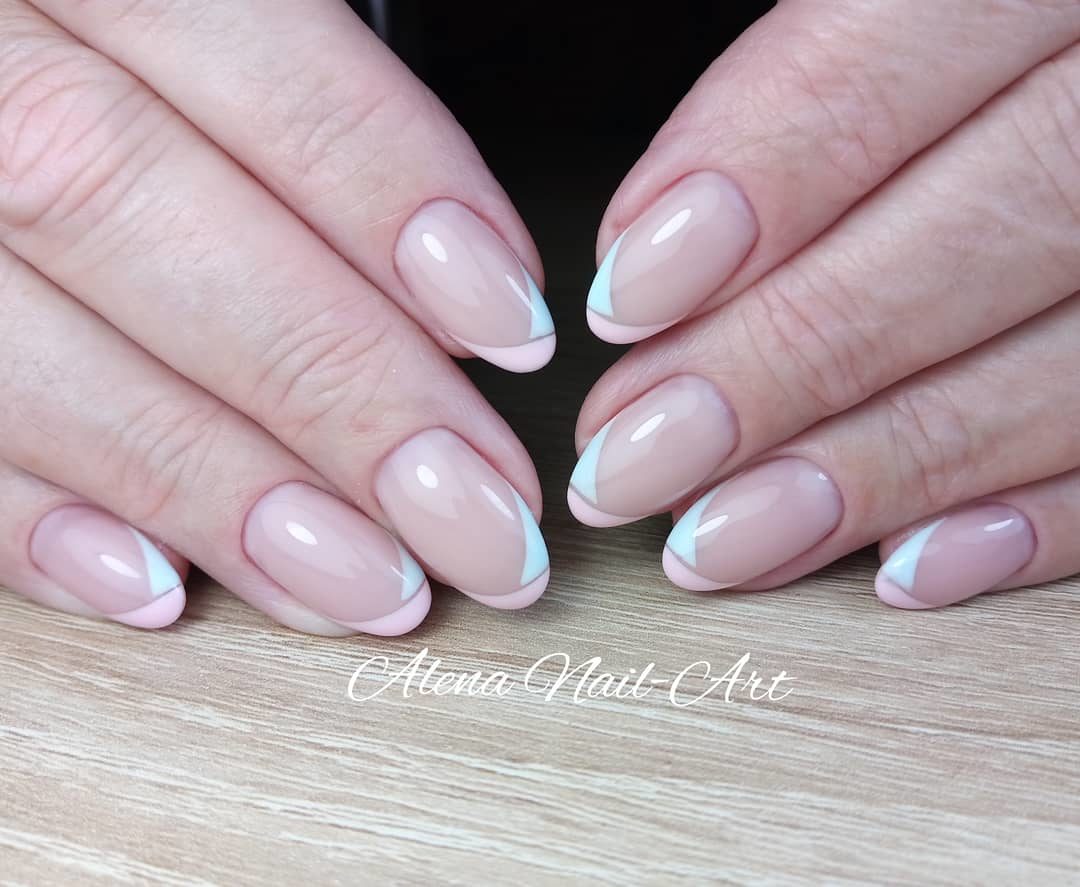 - Если выполняется дизайн наращенных ногтей френч, то здесь уже не обойтись без профессионала. В таком случае маникюр может быть выполнен при помощи акрилового покрытия или же наращивание на френч-типсы. Более безопасным способом является наращивание на типсы с дальнейшим гелевым покрытием. В таком случае натуральные ноготки смогут дышать, что является очень важным фактором. Кроме этого, после снятия акриловых ногтей, натуральные будут нуждаться в особом уходе, чтобы стало возможным восстановить ногтевую пластину после перенесенного «стресса».