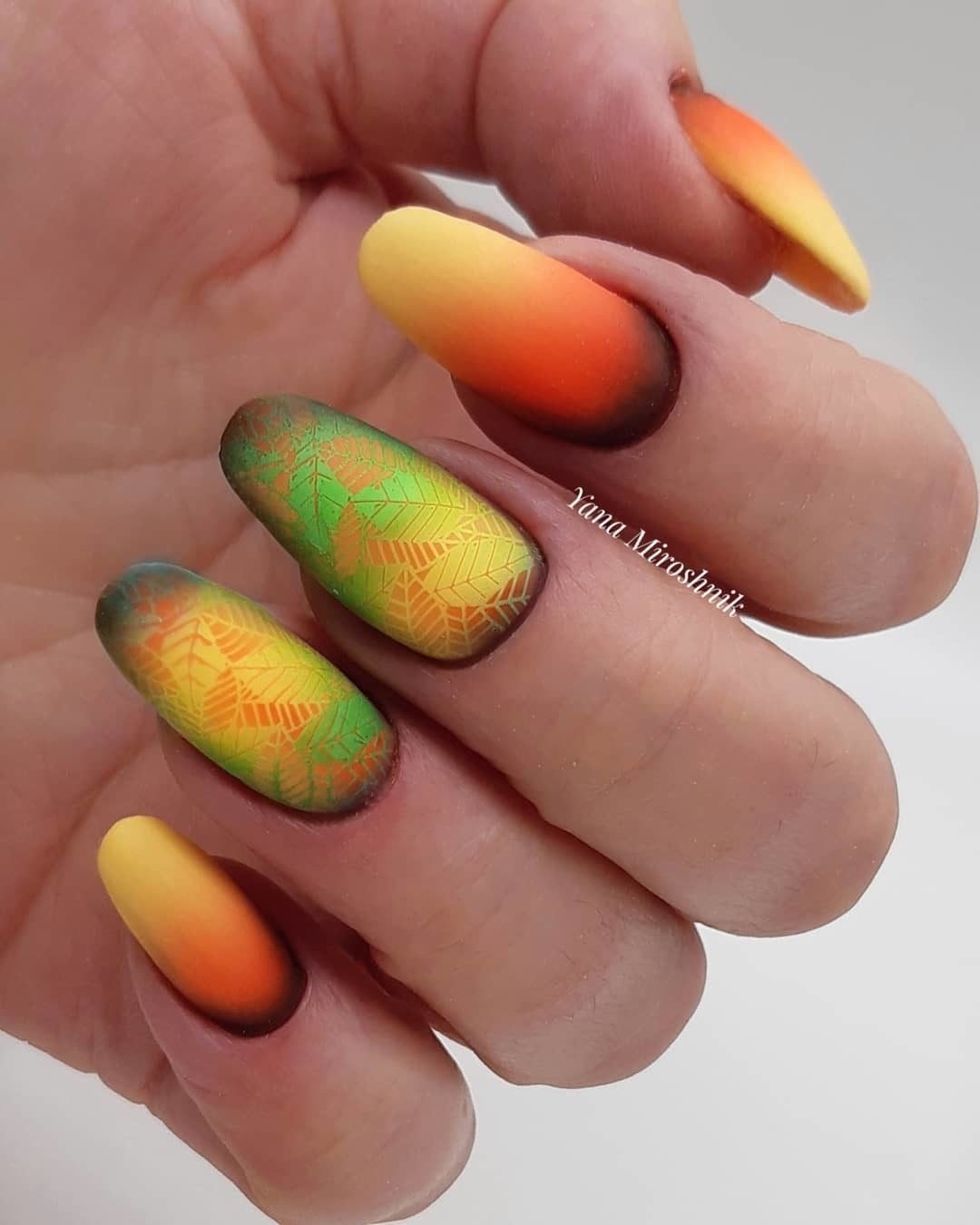 Цветной френч может быть самым разнообразным. Вот наиболее популярные техники, используемые для такого дизайна ногтей: