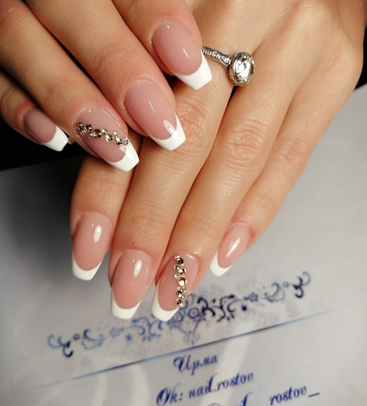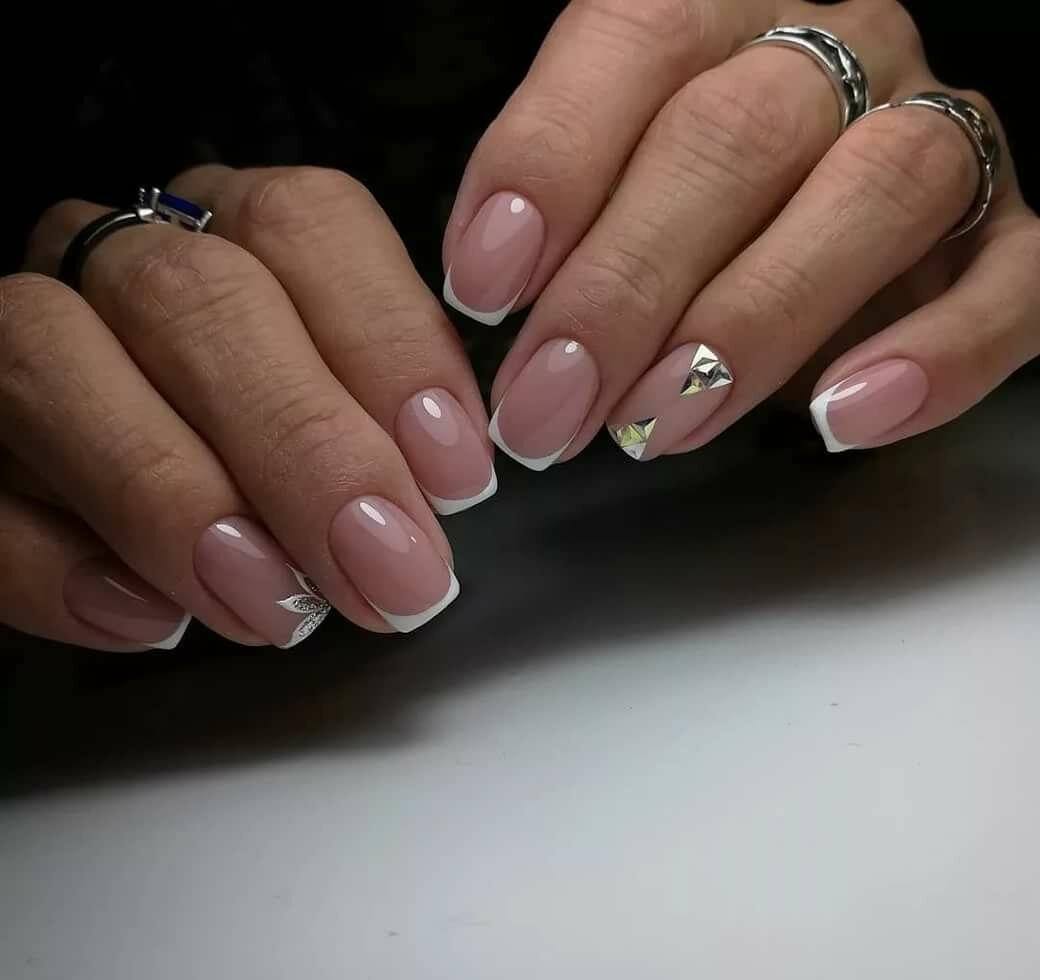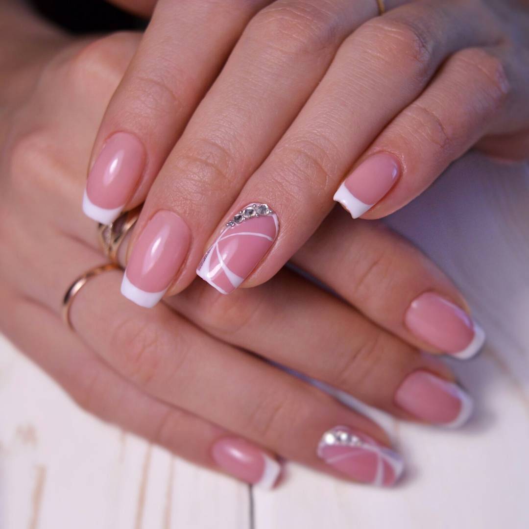 - Классический французский маникюр представляет собой белый кончик и розовое или бежевое основание ногтевой пластины.