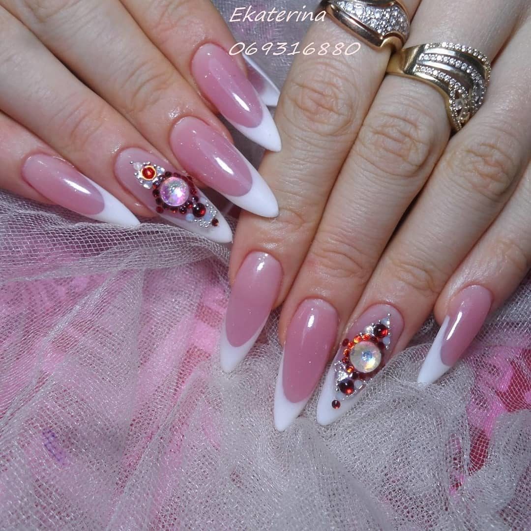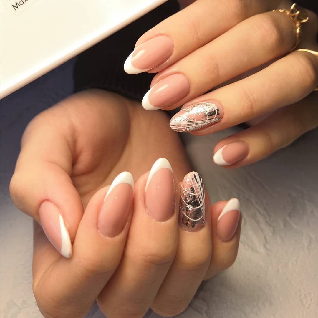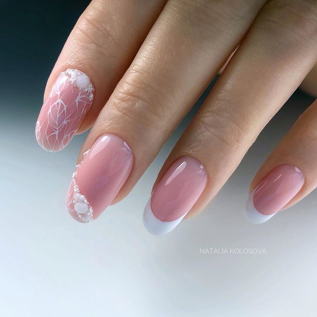 - Классический французский маникюр представляет собой белый кончик и розовое или бежевое основание ногтевой пластины.