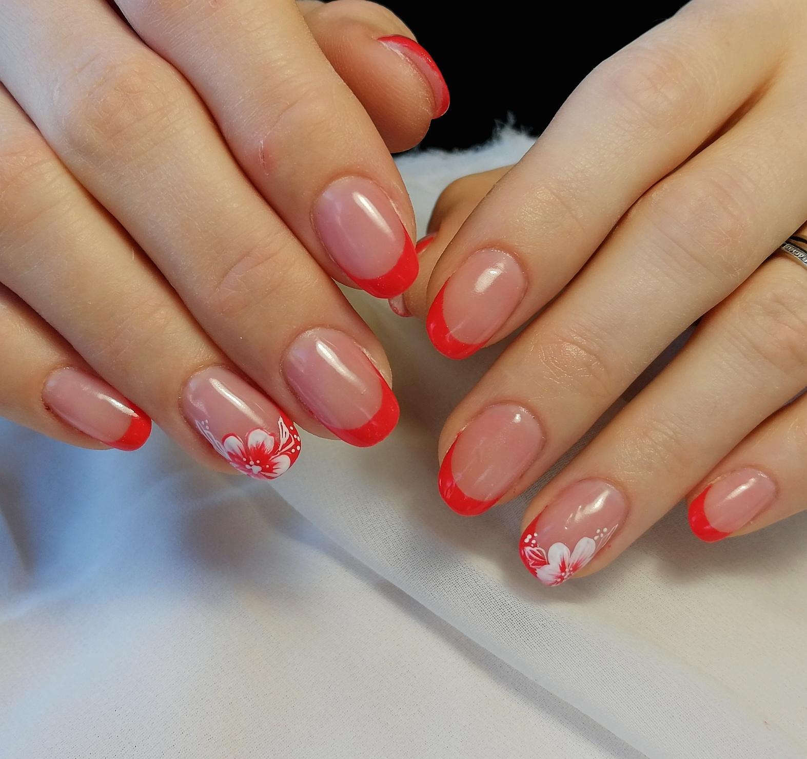 Он выглядит невероятно стильно и придает каждому образу особую элегантность. Такой яркий французский маникюр можно дополнить дизайном в виде абстракции, кружева, геометрии или цветочного дизайна. Каждый из них по-своему украшает красный френч. Дополнительный декор в этом случае тоже уместен, но даже и без украшений, красный френч выглядит потрясающе.