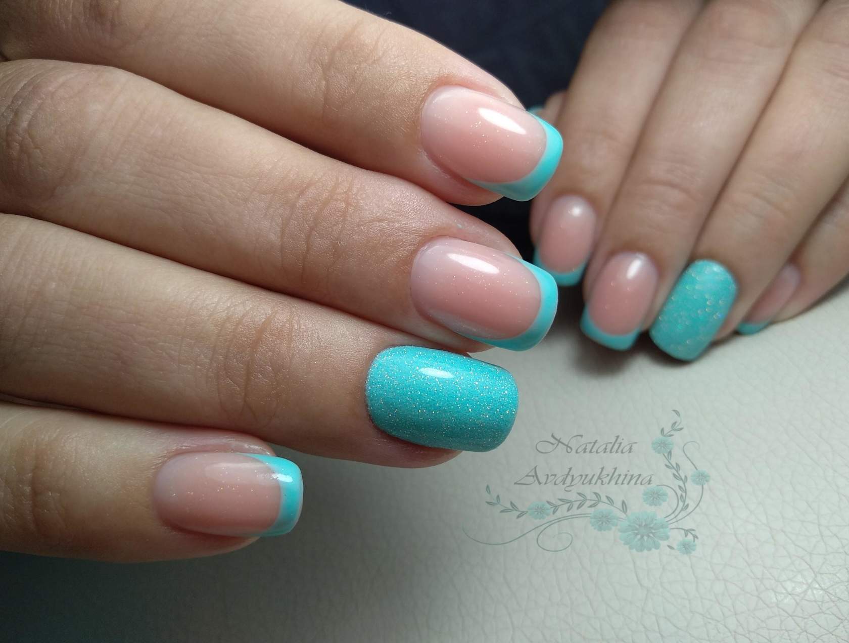 Сочетать цветной френч можно с разнообразными рисунками, геометрическими и цветочными мотивами, блестящими элементами и камнями. Ограничений нет. Главное не перегрузить дизайн.