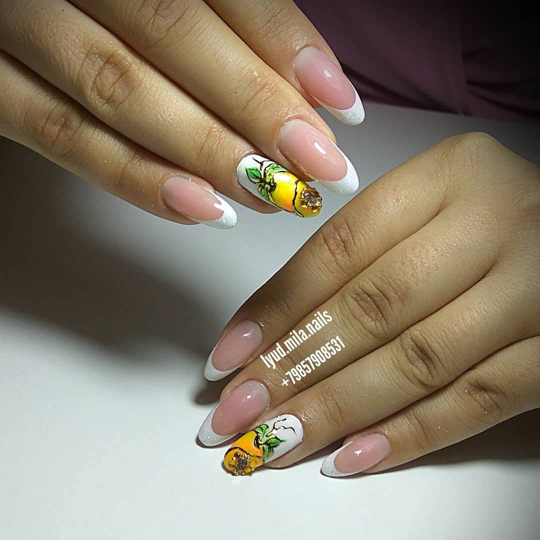 В 2020-2021 году можете дополнить свой френч желтым цветом, благодаря широкой палитре желтых оттенков, дизайн может быть актуален не только весной и летом.
